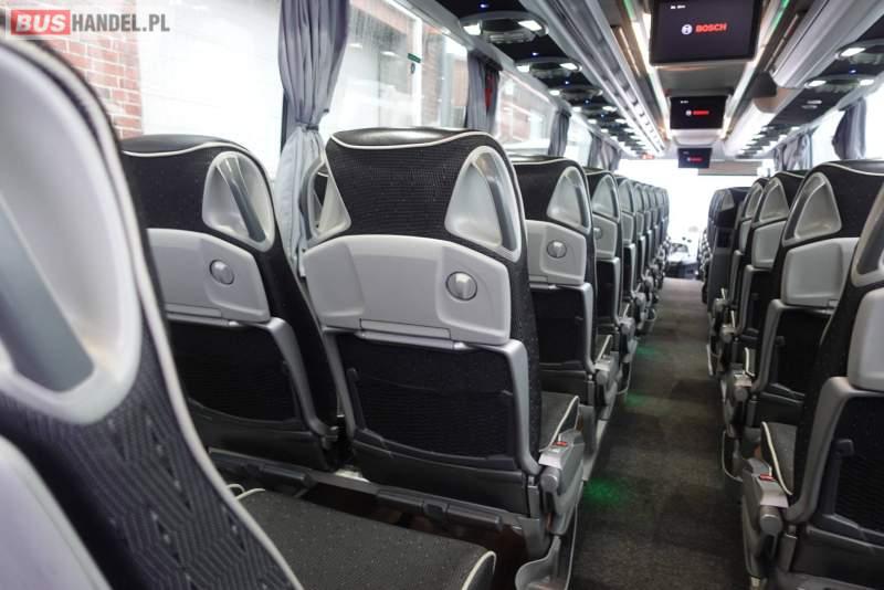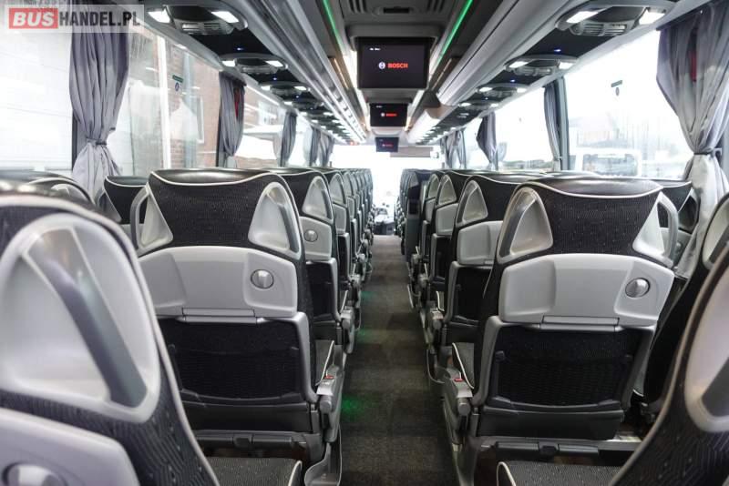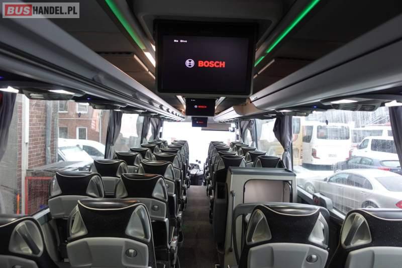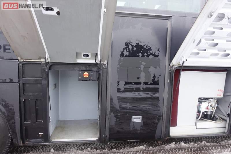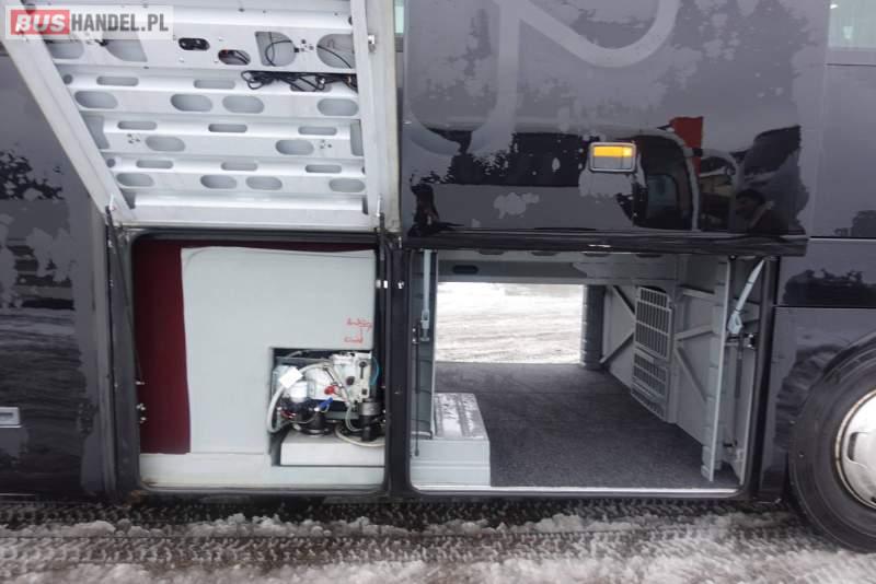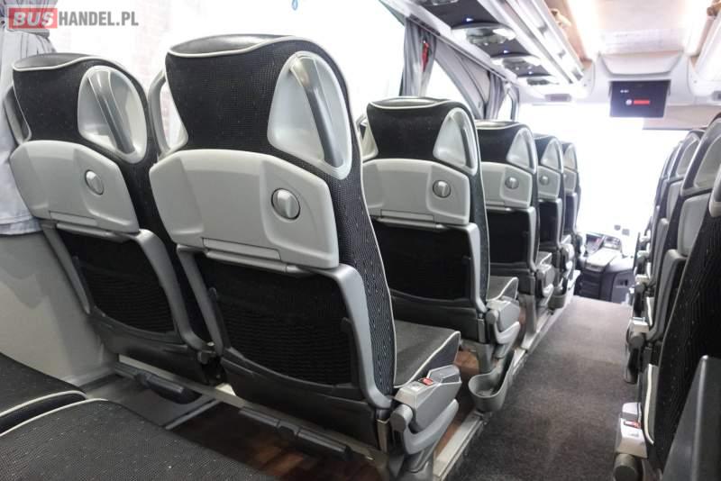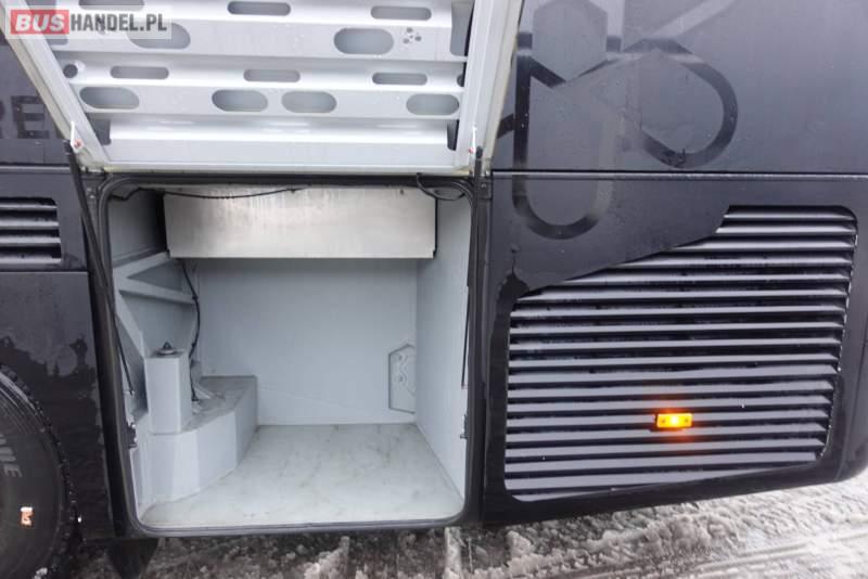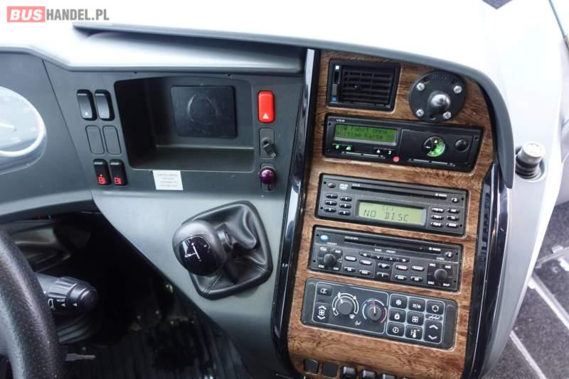 : video, WC, lodówka, kabina sypialna, fotele odchylane, oświetlenie indywidualne, nawiewy dyszowe, siateczki, ABS, ASR, tempomat, retarder, CD, podnóżki, stoliczki, mikrofon, klimatyzacja, radio, regulacja wysokości nadwozia, centralny zamek, podwójne szyby boczne, wspomaganie kierownicy, elektryczne lusterka, fotele odchylane i rozsuwane, DVD, ogrzewanie stacjonarne, ESP