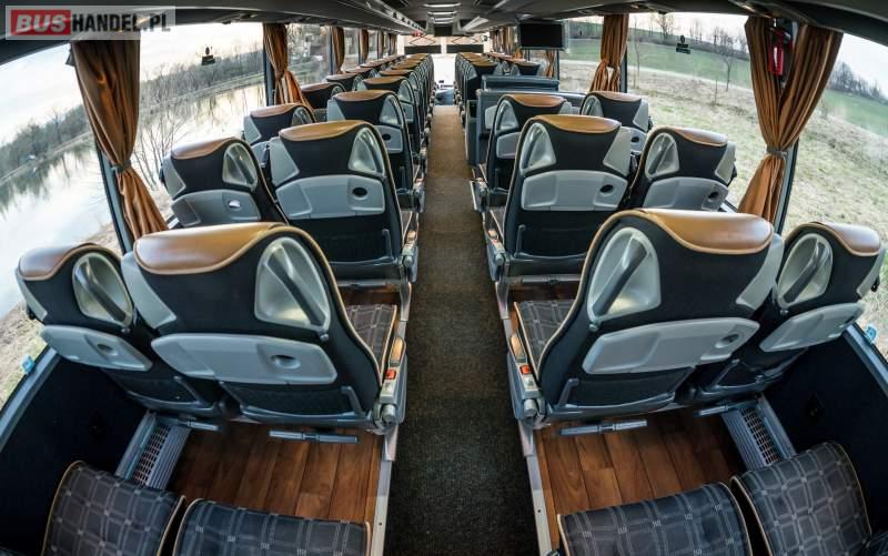 : video, WC, caffebar, fotele odchylane, oświetlenie indywidualne, siateczki, ABS, ASR, tempomat, retarder, telefon, CD, podnóżki, stoliczki, mikrofon, klimatyzacja, radio, wyświetlacz matrix, sejf, regulacja wysokości nadwozia, centralny zamek, podwójne szyby boczne, wspomaganie kierownicy, elektryczne lusterka, aluminiowe felgi, fotele odchylane i rozsuwane, DVD, ogrzewanie stacjonarne, hak holowniczy, ESP