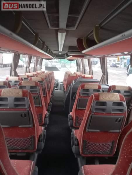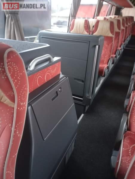 : video, WC, lodówka, caffebar, kabina sypialna, fotele odchylane, nawiewy dyszowe, siateczki, ABS, ASR, tempomat, retarder, nawigacja, CD, podnóżki, stoliczki, mikrofon, klimatyzacja, radio, sejf, regulacja wysokości nadwozia, podwójne szyby boczne, wspomaganie kierownicy, elektryczne lusterka, aluminiowe felgi, fotele odchylane i rozsuwane, DVD, ESP