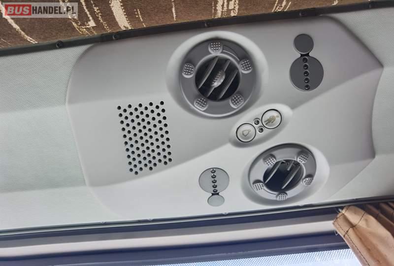 : fotele odchylane, oświetlenie indywidualne, nawiewy dyszowe, ABS, tempomat, retarder, CD, podnóżki, mikrofon, klimatyzacja, radio, rampa dla inwalidów, podwójne szyby boczne, wspomaganie kierownicy, elektryczne lusterka, ogrzewanie stacjonarne