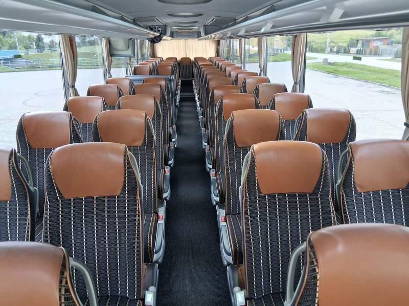 : video, WC, lodówka, kabina sypialna, fotele odchylane, oświetlenie indywidualne, nawiewy dyszowe, siateczki, ABS, ASR, tempomat, retarder, CD, podnóżki, stoliczki, mikrofon, klimatyzacja, radio, regulacja wysokości nadwozia, centralny zamek, podwójne szyby boczne, wspomaganie kierownicy, elektryczne lusterka, aluminiowe felgi, DVD, ogrzewanie stacjonarne, ESP