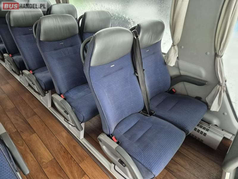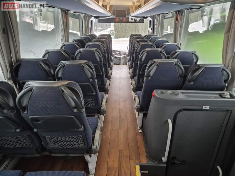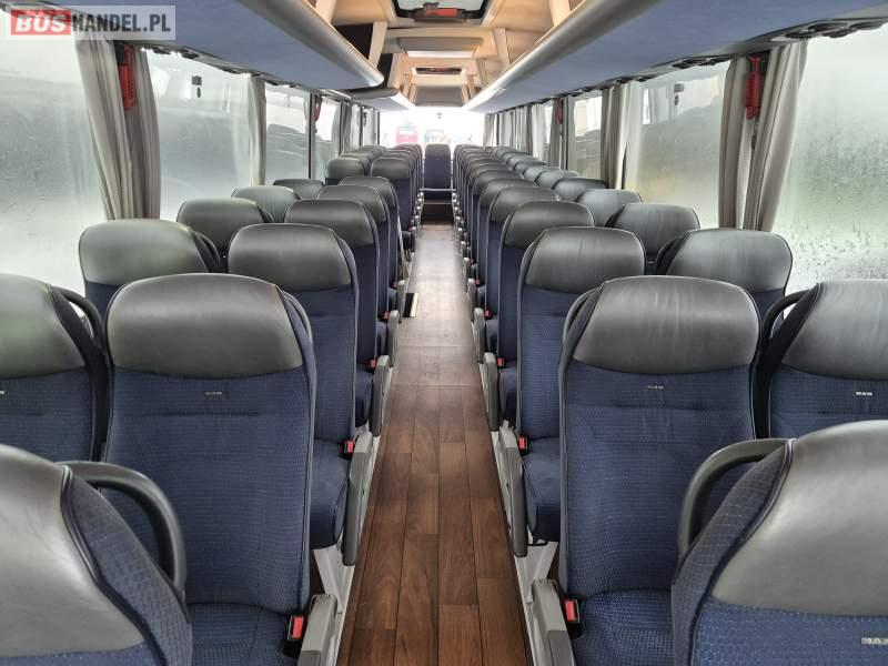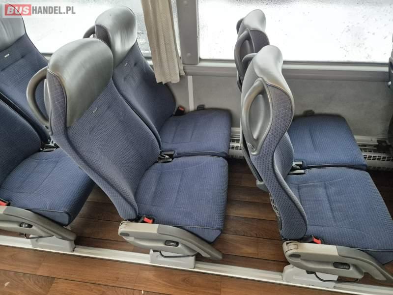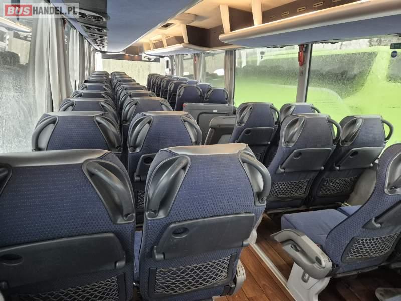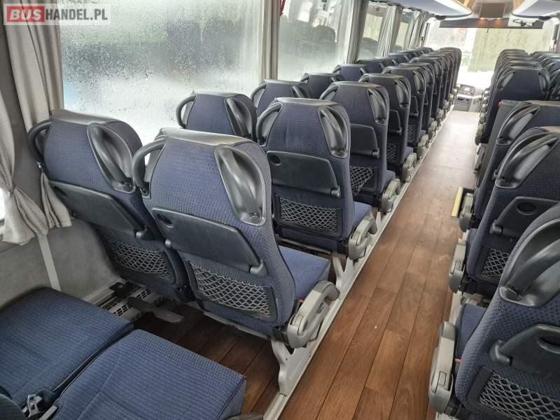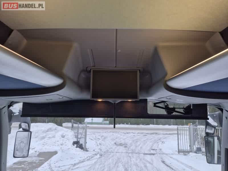 : video, WC, lodówka, fotele odchylane, oświetlenie indywidualne, siateczki, ABS, tempomat, retarder, nawigacja, CD, podnóżki, stoliczki, klimatyzacja, radio, regulacja wysokości nadwozia, centralny zamek, podwójne szyby boczne, wspomaganie kierownicy, elektryczne lusterka, DVD, ogrzewanie stacjonarne