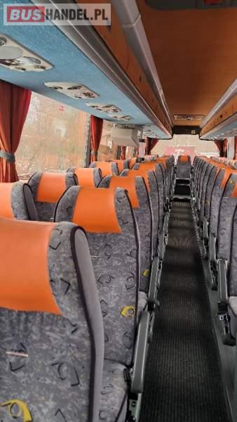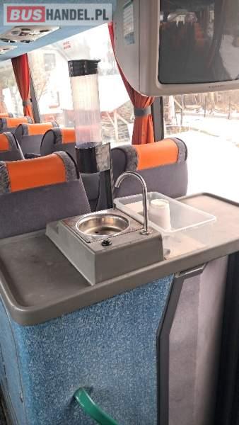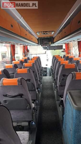 : klimatyzacja, video, WC, lodówka, caffebar, kabina sypialna, oświetlenie indywidualne, nawiewy dyszowe, fotele odchylane, podnóżki, stoliczki, siateczki, ABS, ASR, tempomat, retarder, nawigacja, CD, mikrofon, radio, regulacja wysokości nadwozia, centralny zamek, podwójne szyby boczne, wspomaganie kierownicy, elektryczne lusterka, ogrzewanie stacjonarne, DVD