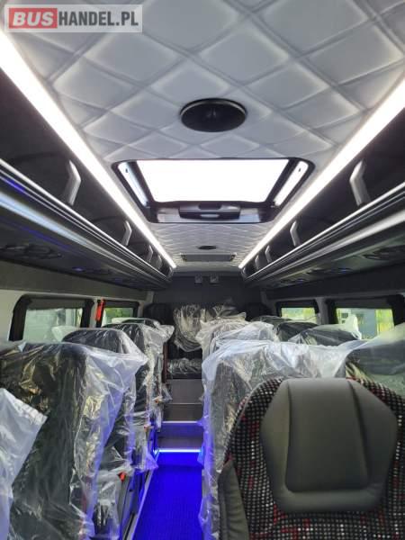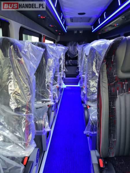 Numer pojazdu w ofercie: 4 NOWY, NIEUŻYWANY Marka i model: Mercedes-Benz Sprinter 519 CDI Rok produkcji: 2023 Skrzynia biegów: Automatyczna Pojemność silnika: 1950 cm3 Moc: 190 KM Stan licznika : 59 km Autobus w stanie IDEALNYM Nie eksploatowany w kraju. CENA: 339 000 zł + VAT Wyposażenie: - 24 miejsca siedzące + 4 stojących - fotel pilota - grzejniki - klimatyzacja dachowa - klimatyzacja przednia - fotele rozkładane z podłokietnikami i pasami bezpieczeństwa - podświetlane półki bagażowe z indywidualnym oświetleniem i nawiewami - tempomat - szyberdach - tachograf - radio - elektryczne szyby - duży bagażnik - kierownica wielofunkcyjna - hak Nasza firma wykonuje również zabudowy na autobusy od 16 do 24 miejsc + do 6 miejsc stojących na bazie fabrycznie nowego jak i używanego Mercedesa Sprintera. W zależności od potrzeb klienta możemy również montować w autobusach różne wyposażenie, od stolików, kanap do spania, po lodówki i inne dodatkowe wyposażenie. Sprzedający: