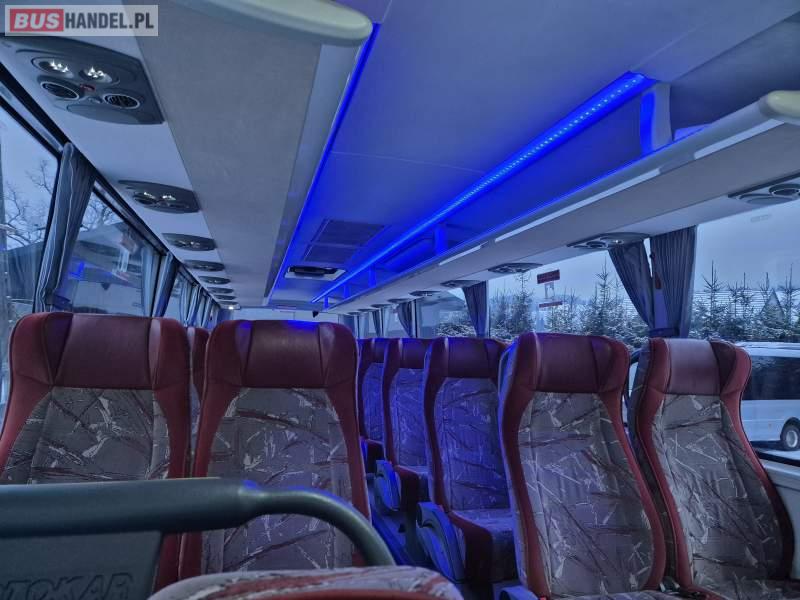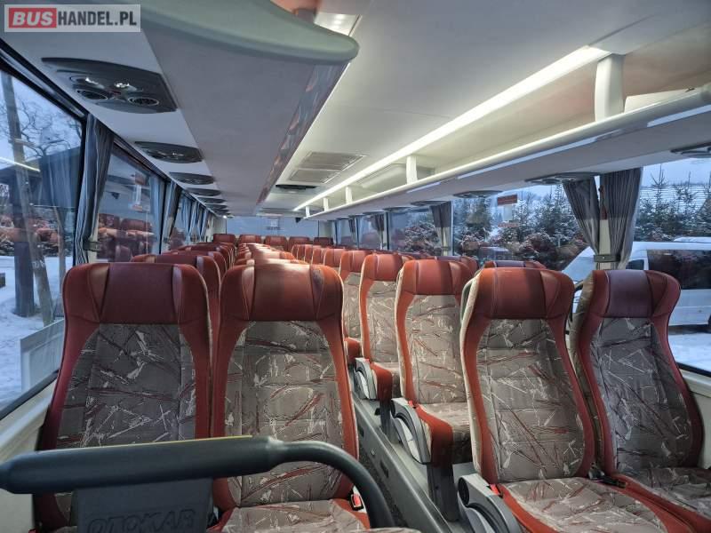 : lodówka, caffebar, oświetlenie indywidualne, nawiewy dyszowe, siateczki, ABS, ASR, tempomat, retarder, CD, podnóżki, stoliczki, mikrofon, klimatyzacja, radio, regulacja wysokości nadwozia, podwójne szyby boczne, wspomaganie kierownicy, elektryczne lusterka, aluminiowe felgi, fotele odchylane i rozsuwane, DVD, ogrzewanie stacjonarne, ESP