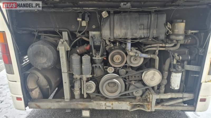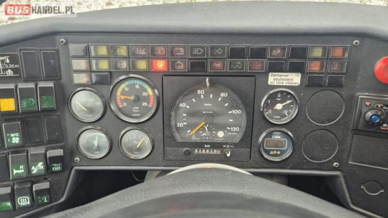 : WC, lodówka, fotele odchylane, oświetlenie indywidualne, nawiewy dyszowe, ABS, ASR, retarder, podnóżki, klimatyzacja, radio, regulacja wysokości nadwozia, podwójne szyby boczne, wspomaganie kierownicy, ogrzewanie stacjonarne