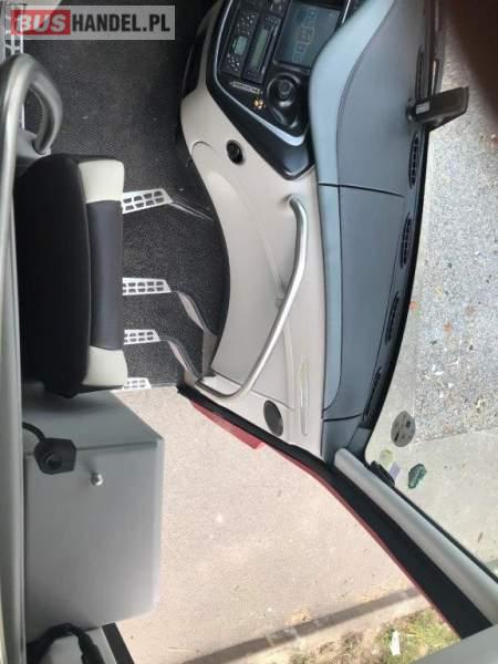 : video, WC, lodówka, kabina sypialna, fotele odchylane, oświetlenie indywidualne, nawiewy dyszowe, ABS, ASR, tempomat, retarder, CD, podnóżki, mikrofon, klimatyzacja, radio, regulacja wysokości nadwozia, centralny zamek, podwójne szyby boczne, wspomaganie kierownicy, elektryczne lusterka, DVD, ogrzewanie stacjonarne