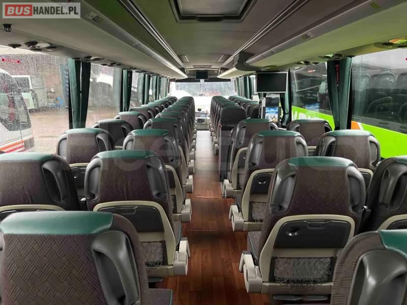 : WC, lodówka, fotele odchylane, ABS, ASR, retarder, CD, podnóżki, stoliczki, mikrofon, fotele odchylane i rozsuwane, DVD