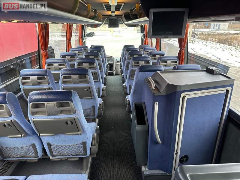 : video, WC, lodówka, caffebar, fotele odchylane, oświetlenie indywidualne, nawiewy dyszowe, siateczki, ABS, ASR, tempomat, retarder, telefon, nawigacja, CD, podnóżki, stoliczki, mikrofon, klimatyzacja, radio, wyświetlacz matrix, sejf, regulacja wysokości nadwozia, centralny zamek, podwójne szyby boczne, wspomaganie kierownicy, elektryczne lusterka, fotele odchylane i rozsuwane, DVD, ogrzewanie stacjonarne, hak holowniczy, ESP
