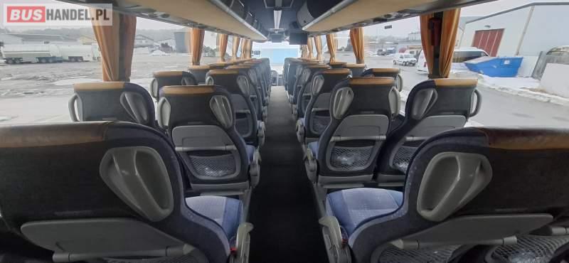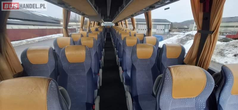 : video, WC, lodówka, caffebar, kabina sypialna, oświetlenie indywidualne, nawiewy dyszowe, siateczki, ABS, ASR, tempomat, retarder, CD, podnóżki, stoliczki, mikrofon, klimatyzacja, radio, regulacja wysokości nadwozia, centralny zamek, podwójne szyby boczne, wspomaganie kierownicy, elektryczne lusterka, fotele odchylane i rozsuwane, DVD, ogrzewanie stacjonarne, ESP