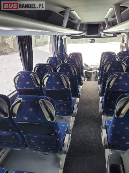 : video, WC, lodówka, caffebar, kabina sypialna, oświetlenie indywidualne, nawiewy dyszowe, siateczki, ABS, ASR, tempomat, retarder, CD, podnóżki, stoliczki, mikrofon, klimatyzacja, radio, sejf, regulacja wysokości nadwozia, centralny zamek, podwójne szyby boczne, wspomaganie kierownicy, elektryczne lusterka, fotele odchylane i rozsuwane, DVD, ogrzewanie stacjonarne, ESP