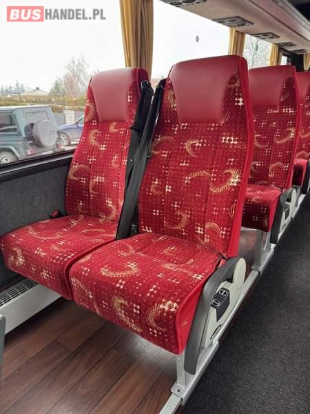 : lodówka, oświetlenie indywidualne, nawiewy dyszowe, siateczki, ABS, ASR, tempomat, retarder, podnóżki, stoliczki, mikrofon, klimatyzacja, radio, regulacja wysokości nadwozia, centralny zamek, podwójne szyby boczne, wspomaganie kierownicy, elektryczne lusterka, fotele odchylane i rozsuwane, DVD, ogrzewanie stacjonarne