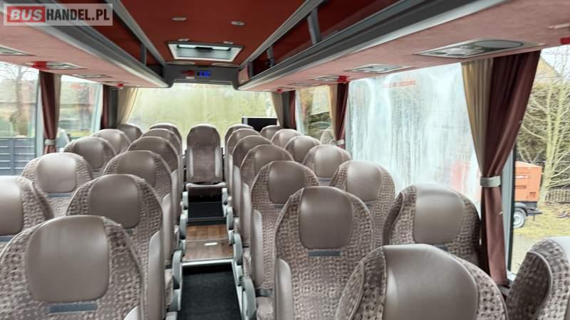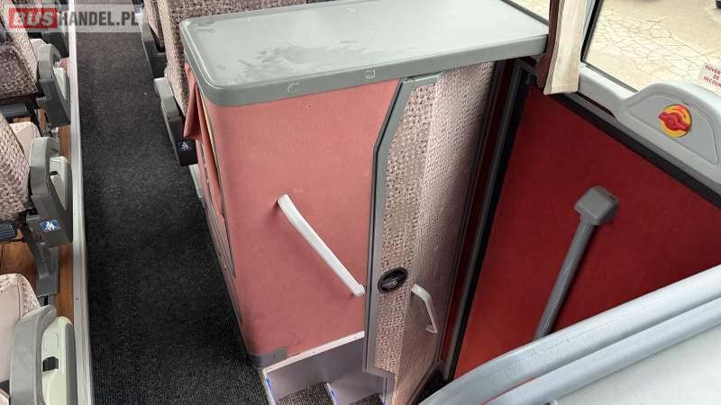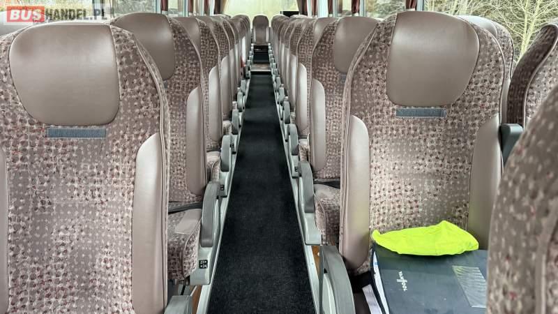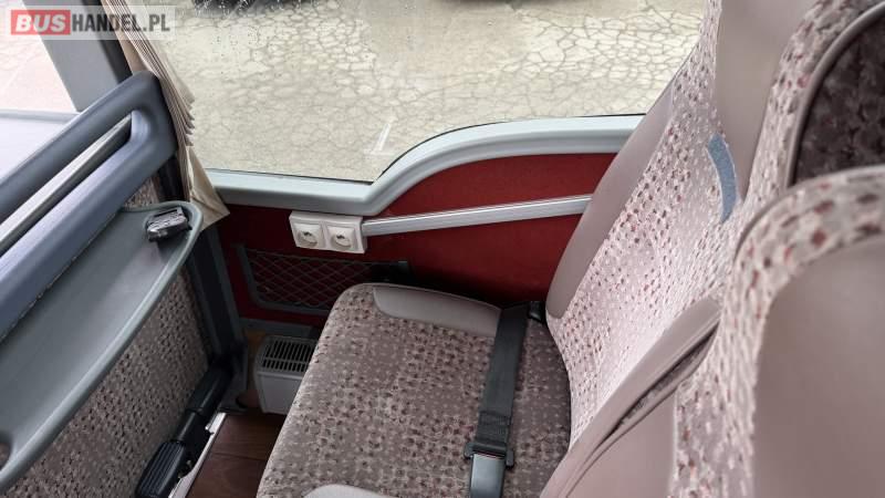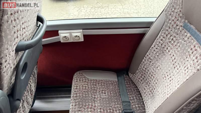 : lodówka, fotele odchylane, nawiewy dyszowe, siateczki, ABS, ASR, tempomat, retarder, podnóżki, stoliczki, mikrofon, klimatyzacja, radio, sejf, regulacja wysokości nadwozia, centralny zamek, podwójne szyby boczne, wspomaganie kierownicy, elektryczne lusterka, DVD, ogrzewanie stacjonarne
