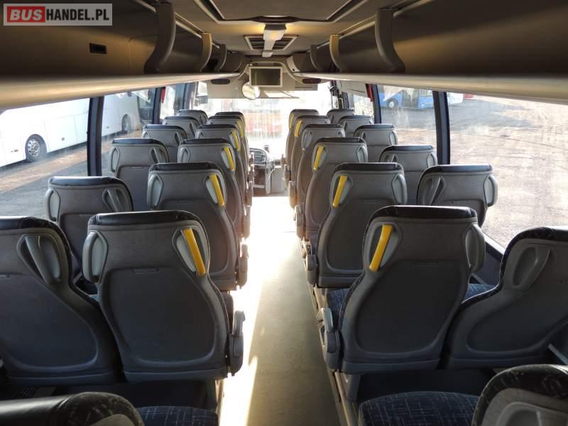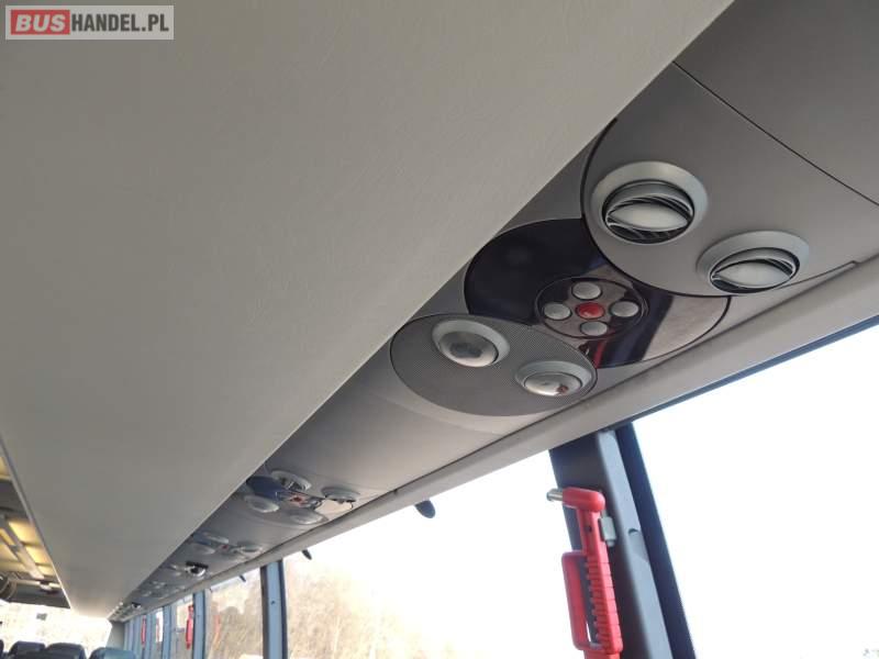 : video, oświetlenie indywidualne, nawiewy dyszowe, ABS, ASR, tempomat, retarder, CD, podnóżki, klimatyzacja, radio, regulacja wysokości nadwozia, centralny zamek, podwójne szyby boczne, wspomaganie kierownicy, elektryczne lusterka, fotele odchylane i rozsuwane, DVD, ogrzewanie stacjonarne, ESP