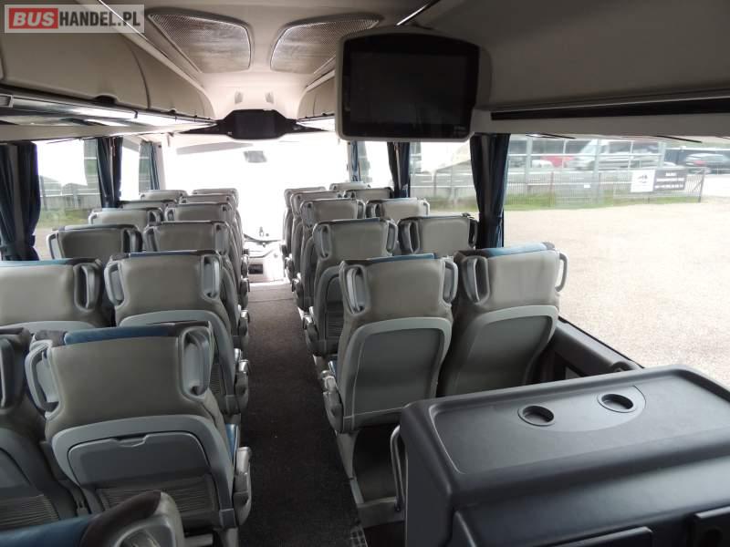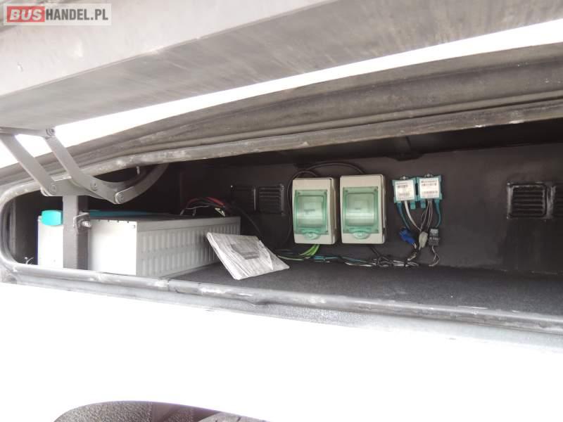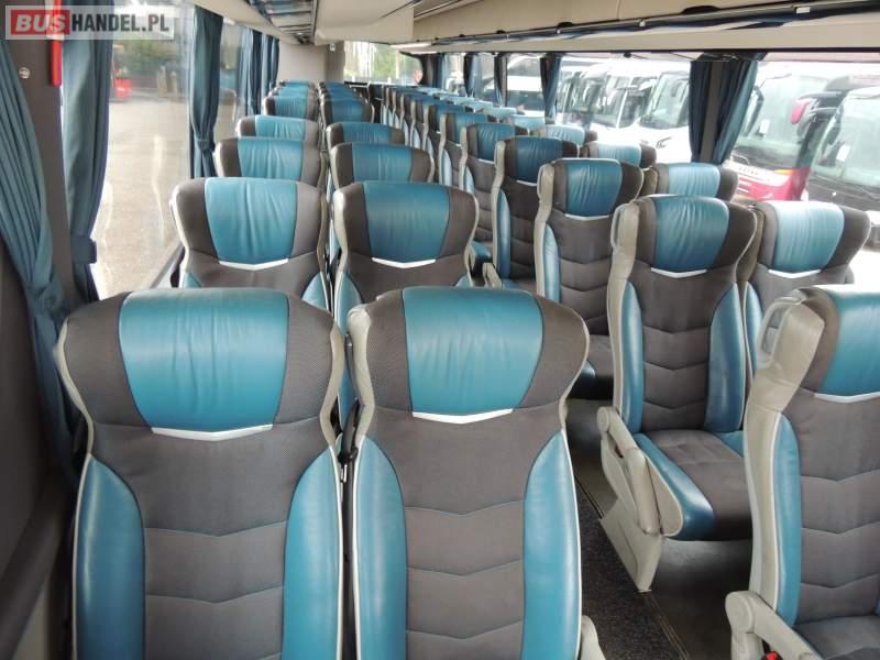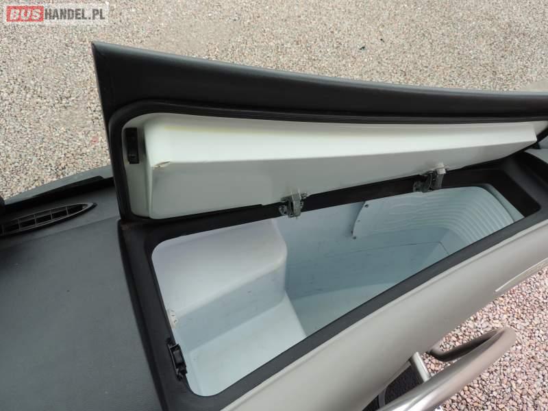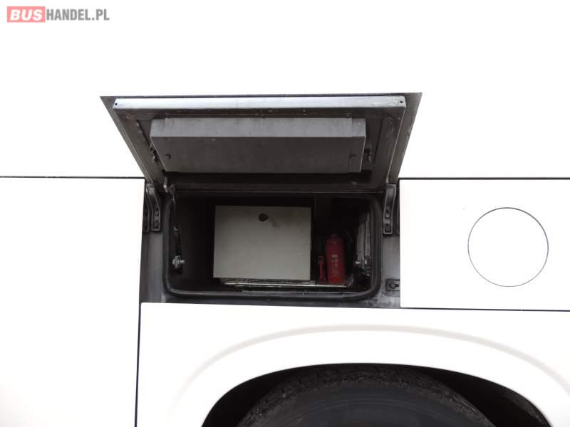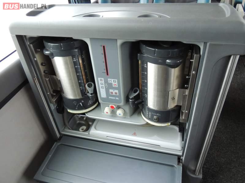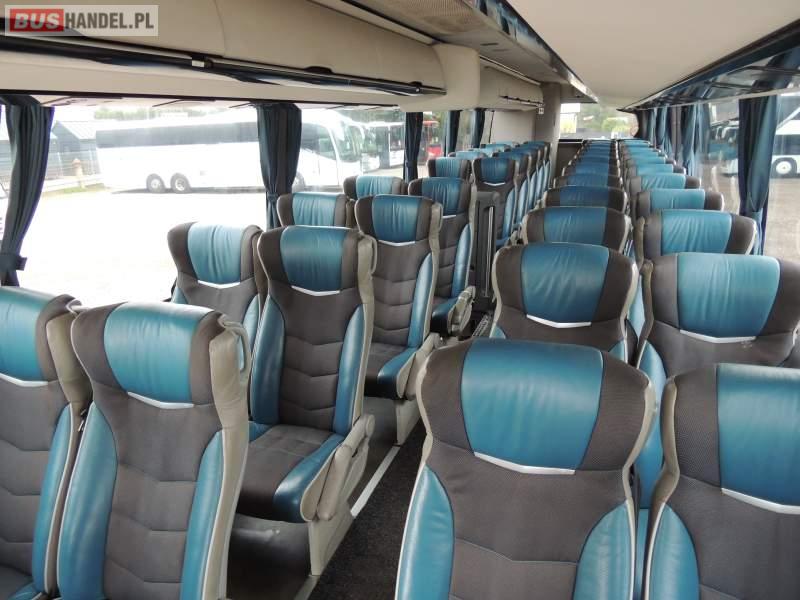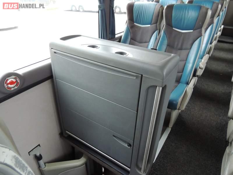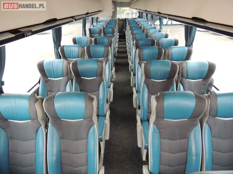 : video, WC, lodówka, caffebar, kabina sypialna, oświetlenie indywidualne, nawiewy dyszowe, siateczki, ABS, ASR, tempomat, retarder, nawigacja, CD, podnóżki, stoliczki, mikrofon, klimatyzacja, radio, sejf, regulacja wysokości nadwozia, centralny zamek, podwójne szyby boczne, wspomaganie kierownicy, aluminiowe felgi, fotele odchylane i rozsuwane, DVD, ogrzewanie stacjonarne, ESP