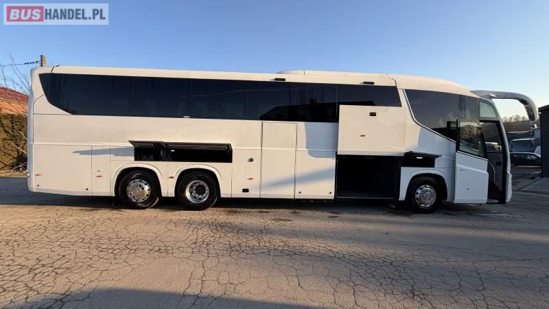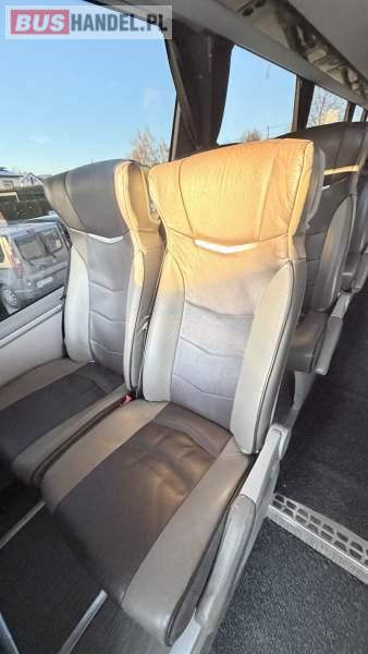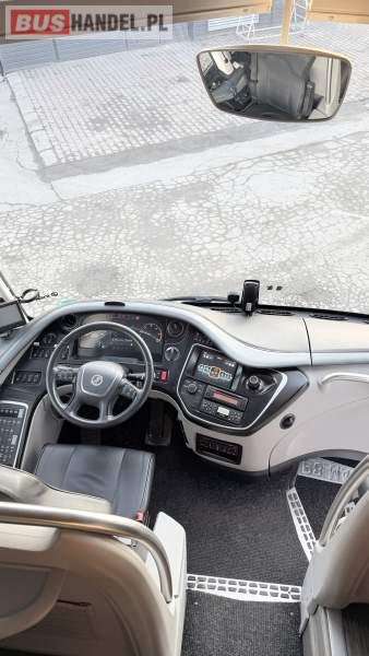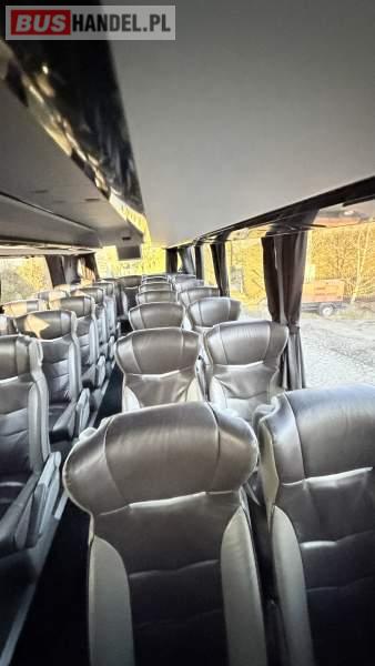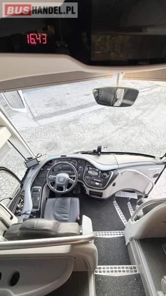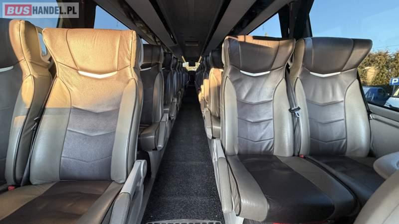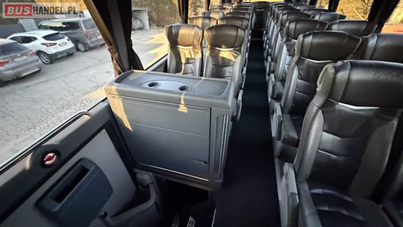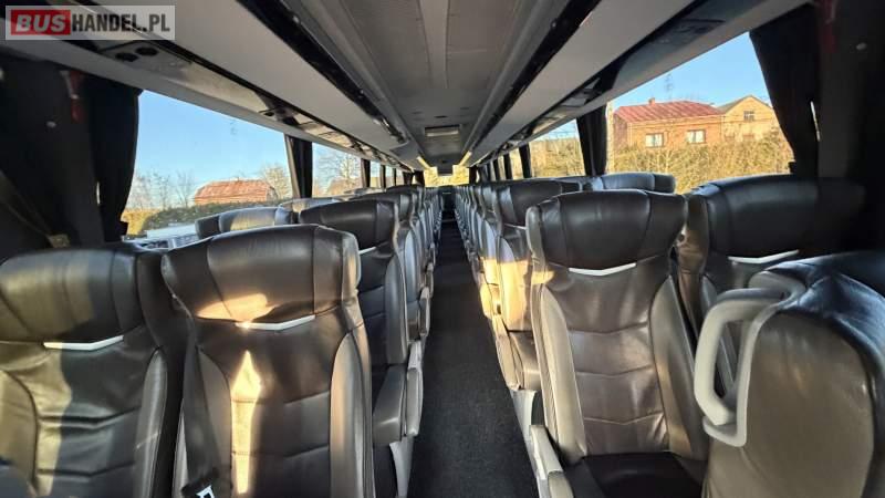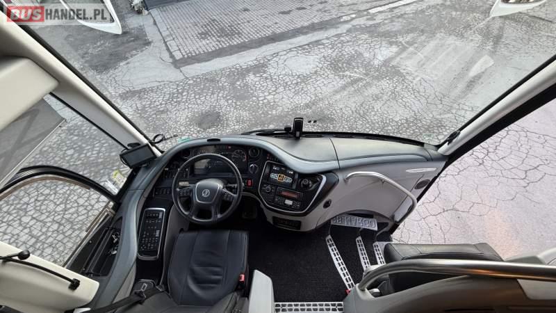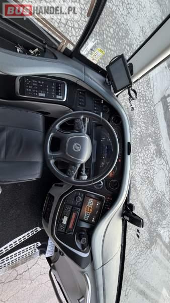 : WC, lodówka, caffebar, kabina sypialna, oświetlenie indywidualne, nawiewy dyszowe, siateczki, ABS, ASR, tempomat, retarder, podnóżki, stoliczki, mikrofon, klimatyzacja, radio, sejf, regulacja wysokości nadwozia, centralny zamek, podwójne szyby boczne, wspomaganie kierownicy, fotele odchylane i rozsuwane, DVD, ogrzewanie stacjonarne, ESP