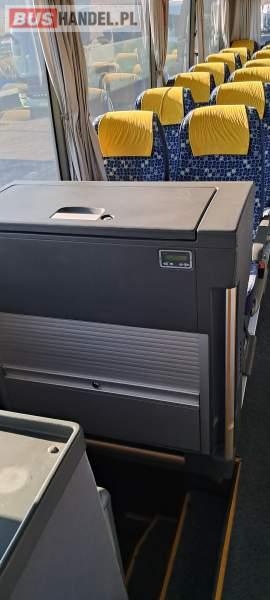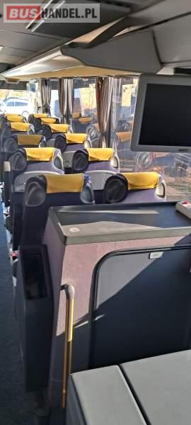 : video, WC, lodówka, caffebar, kabina sypialna, oświetlenie indywidualne, nawiewy dyszowe, siateczki, ABS, ASR, tempomat, retarder, CD, podnóżki, stoliczki, mikrofon, klimatyzacja, radio, regulacja wysokości nadwozia, centralny zamek, podwójne szyby boczne, wspomaganie kierownicy, elektryczne lusterka, fotele odchylane i rozsuwane, DVD, ogrzewanie stacjonarne, ESP