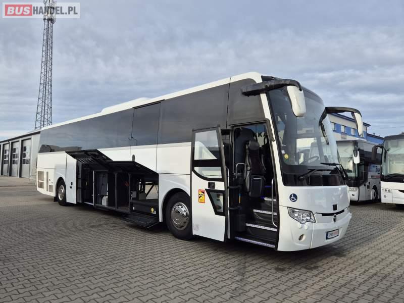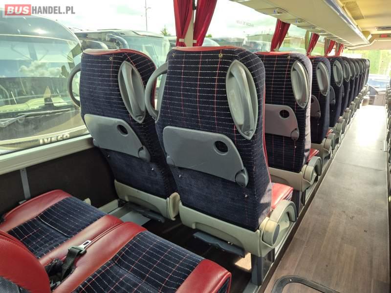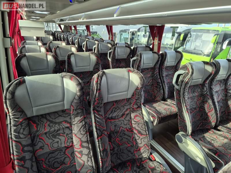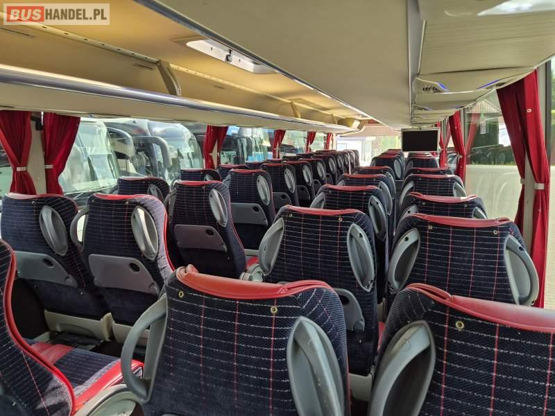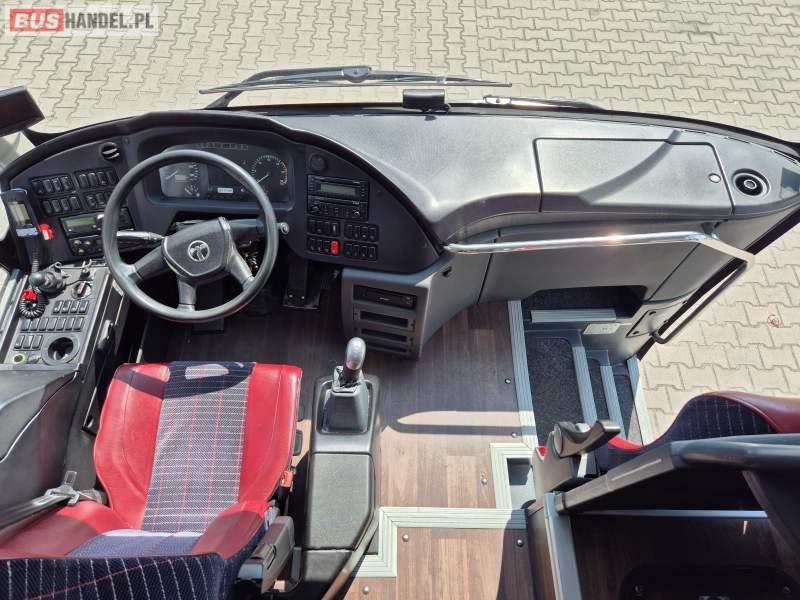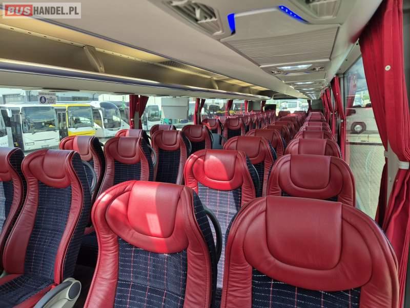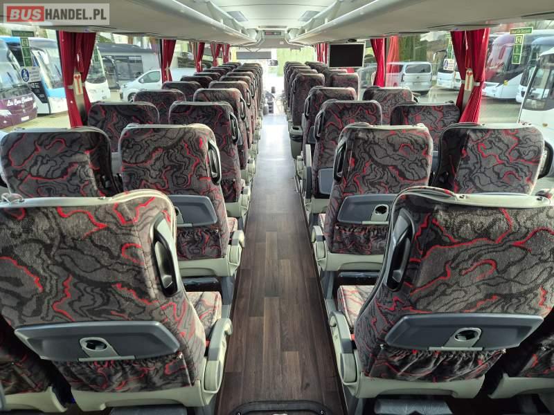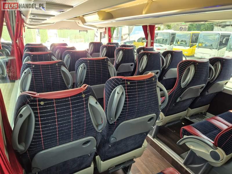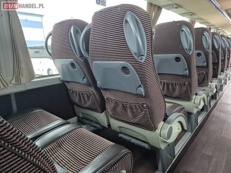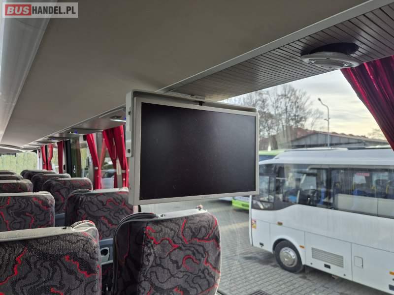 : klimatyzacja, video, WC, lodówka, caffebar, kabina sypialna, oświetlenie indywidualne, fotele odchylane, podnóżki, stoliczki, siateczki, ABS, tempomat, retarder, nawigacja, CD, mikrofon, radio, rampa dla inwalidów, regulacja wysokości nadwozia, centralny zamek, podwójne szyby boczne, wspomaganie kierownicy, elektryczne lusterka, ogrzewanie stacjonarne, DVD