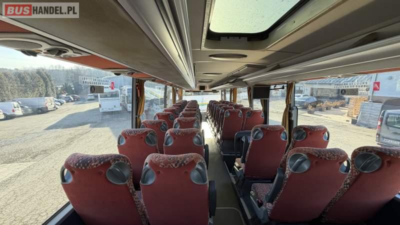 : lodówka, oświetlenie indywidualne, nawiewy dyszowe, siateczki, ABS, ASR, tempomat, retarder, podnóżki, stoliczki, mikrofon, klimatyzacja, radio, sejf, regulacja wysokości nadwozia, centralny zamek, podwójne szyby boczne, wspomaganie kierownicy, elektryczne lusterka, fotele odchylane i rozsuwane, DVD, ogrzewanie stacjonarne