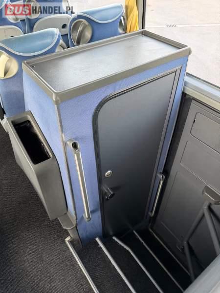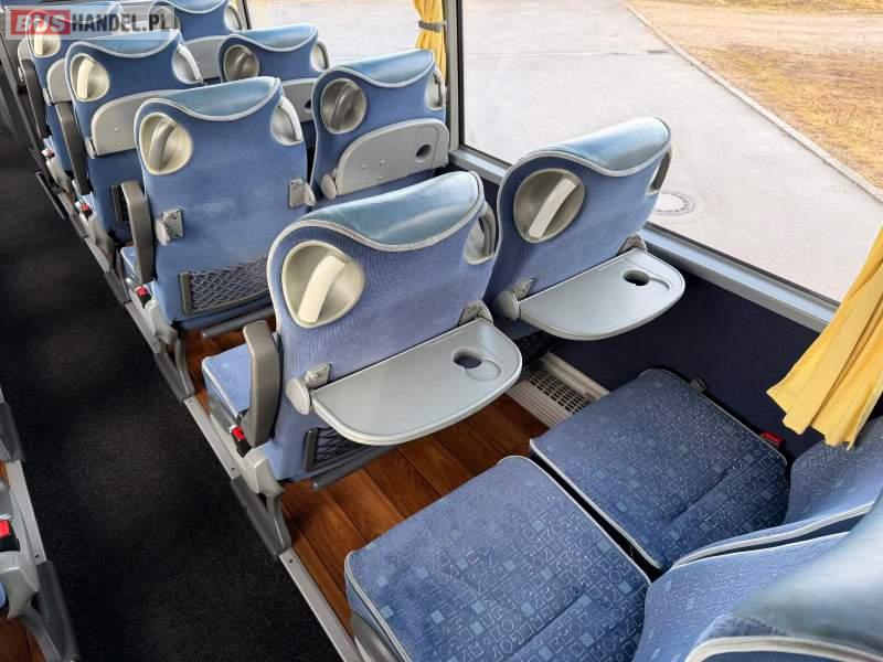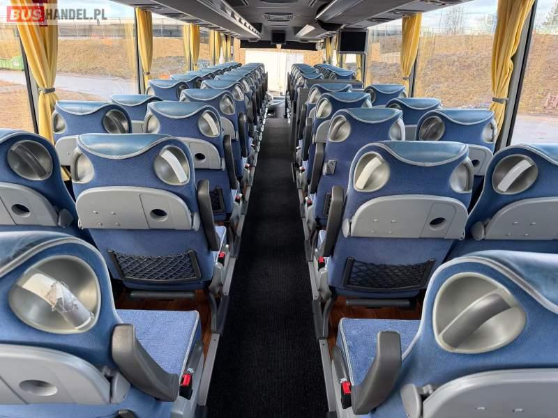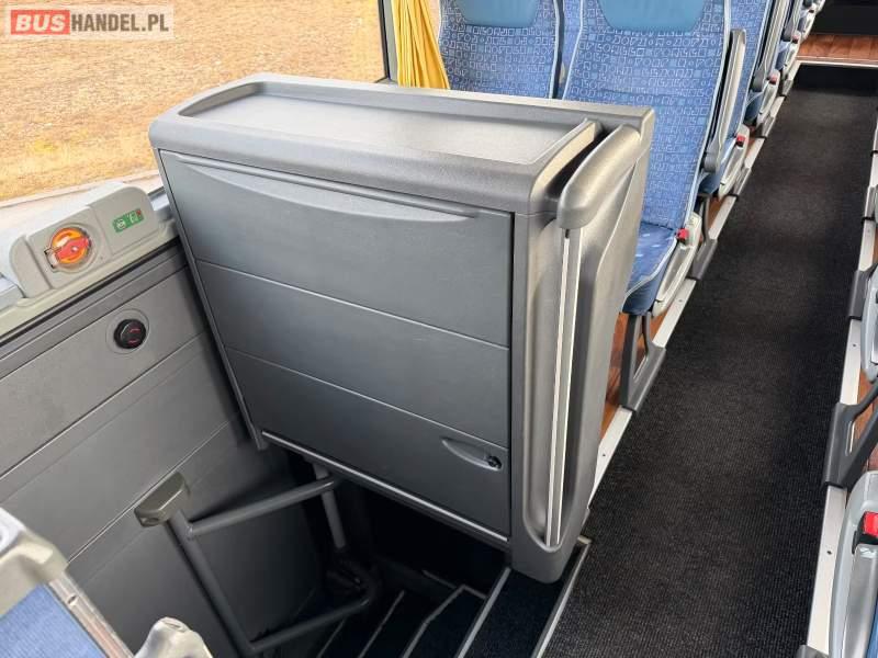 : video, WC, lodówka, caffebar, oświetlenie indywidualne, ABS, ASR, tempomat, retarder, CD, podnóżki, mikrofon, klimatyzacja, radio, regulacja wysokości nadwozia, centralny zamek, podwójne szyby boczne, wspomaganie kierownicy, elektryczne lusterka, fotele odchylane i rozsuwane, DVD, ogrzewanie stacjonarne, ESP