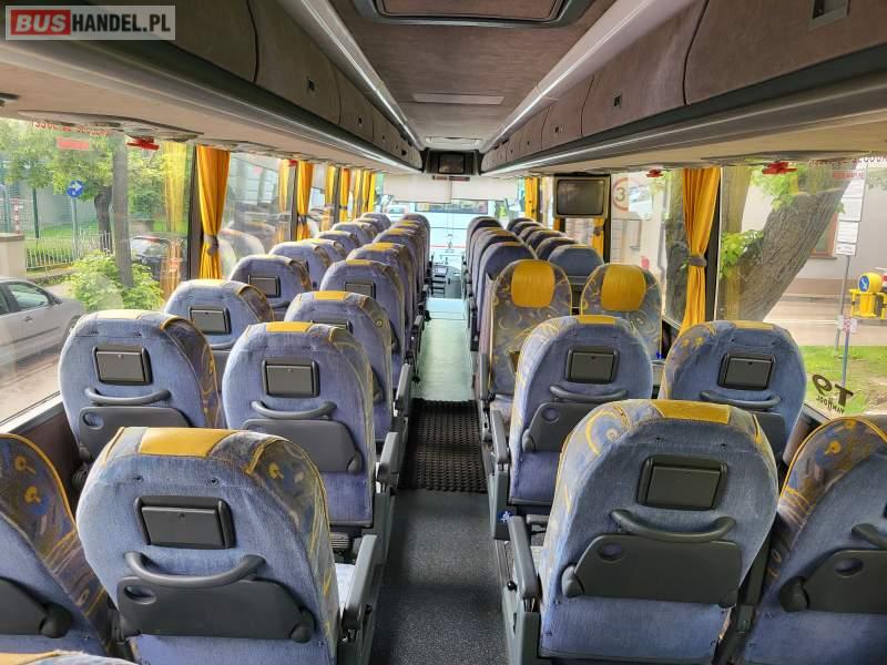 : video, WC, lodówka, kabina sypialna, fotele odchylane, oświetlenie indywidualne, nawiewy dyszowe, siateczki, ABS, ASR, tempomat, retarder, nawigacja, CD, podnóżki, stoliczki, mikrofon, klimatyzacja, radio, wyświetlacz matrix, regulacja wysokości nadwozia, centralny zamek, wspomaganie kierownicy, elektryczne lusterka, aluminiowe felgi, DVD, ogrzewanie stacjonarne, ESP