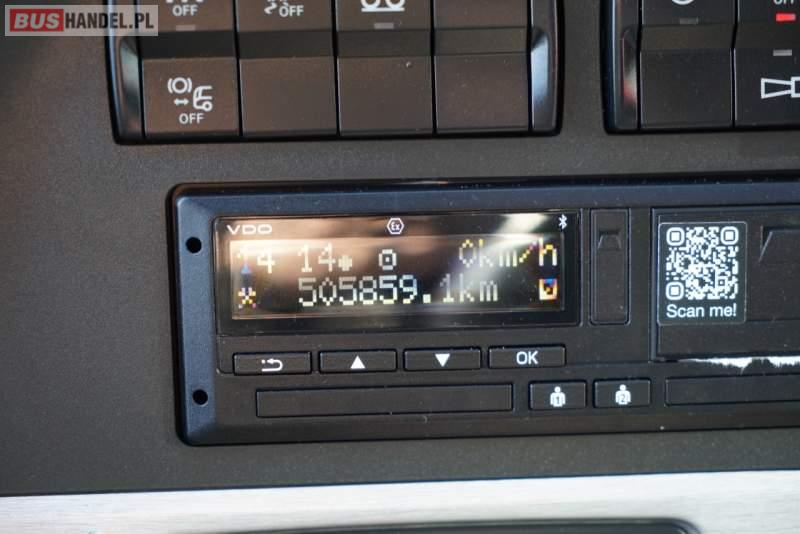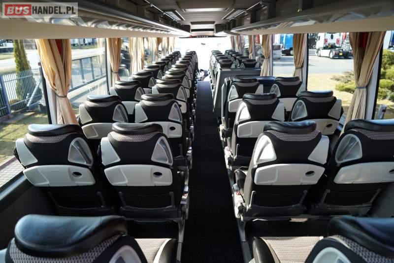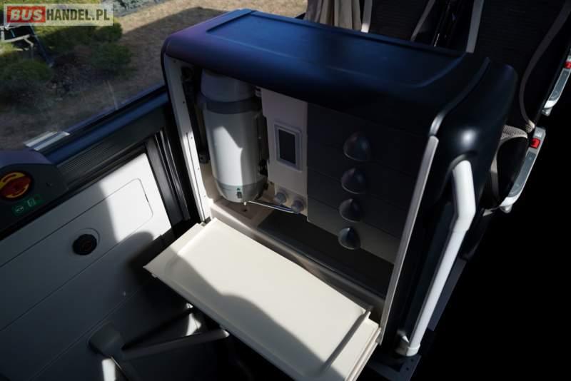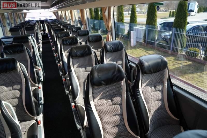 : WC, lodówka, caffebar, ABS, tempomat, retarder, podnóżki, mikrofon, klimatyzacja, radio, fotele odchylane i rozsuwane