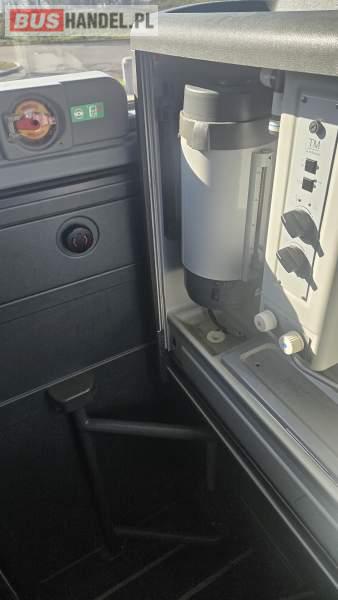 : WC, lodówka, caffebar, kabina sypialna, oświetlenie indywidualne, nawiewy dyszowe, siateczki, ABS, ASR, tempomat, retarder, podnóżki, stoliczki, mikrofon, klimatyzacja, radio, sejf, regulacja wysokości nadwozia, centralny zamek, podwójne szyby boczne, wspomaganie kierownicy, elektryczne lusterka, fotele odchylane i rozsuwane, DVD, ogrzewanie stacjonarne, ESP