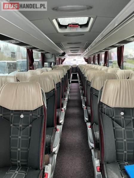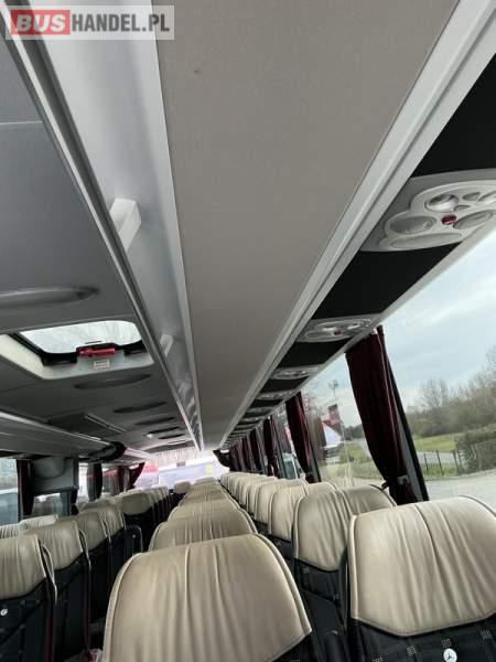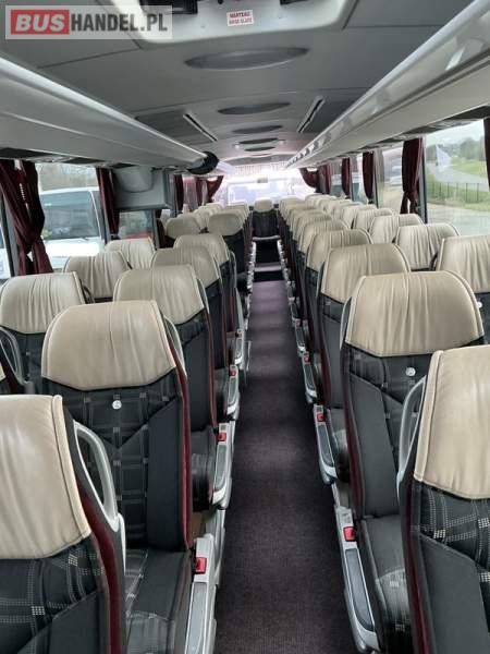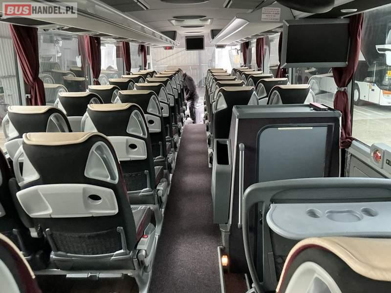 : video, WC, lodówka, kabina sypialna, fotele odchylane, oświetlenie indywidualne, nawiewy dyszowe, siateczki, ABS, ASR, tempomat, retarder, CD, podnóżki, stoliczki, mikrofon, klimatyzacja, radio, sejf, regulacja wysokości nadwozia, centralny zamek, podwójne szyby boczne, wspomaganie kierownicy, elektryczne lusterka, DVD, ogrzewanie stacjonarne, ESP