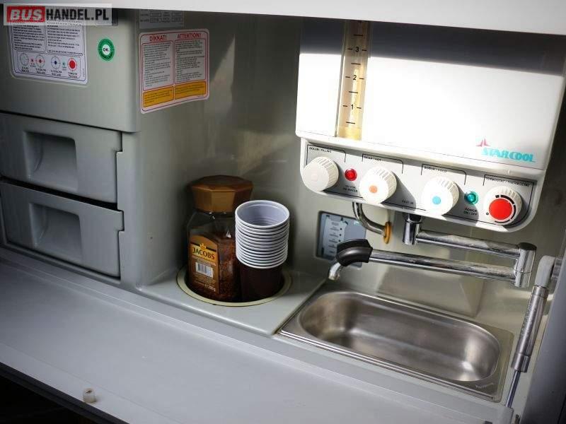 : video, WC, lodówka, caffebar, kabina sypialna, oświetlenie indywidualne, nawiewy dyszowe, siateczki, ABS, ASR, tempomat, retarder, CD, podnóżki, stoliczki, mikrofon, klimatyzacja, radio, regulacja wysokości nadwozia, podwójne szyby boczne, wspomaganie kierownicy, elektryczne lusterka, fotele odchylane i rozsuwane, DVD, ogrzewanie stacjonarne, ESP