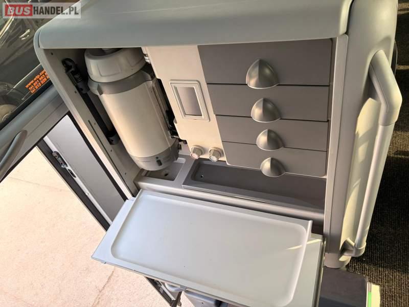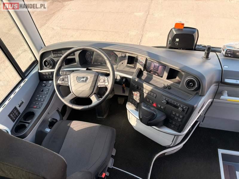 : klimatyzacja, WC, lodówka, caffebar, kabina sypialna, oświetlenie indywidualne, podnóżki, stoliczki, siateczki, ABS, ASR, tempomat, retarder, telefon, nawigacja, CD, mikrofon, radio, fotele odchylane i rozsuwane, kuchenka mikrofalowa, sejf, regulacja wysokości nadwozia, centralny zamek, podwójne szyby boczne, wspomaganie kierownicy, elektryczne lusterka, ogrzewanie stacjonarne, DVD, hak holowniczy, ESP