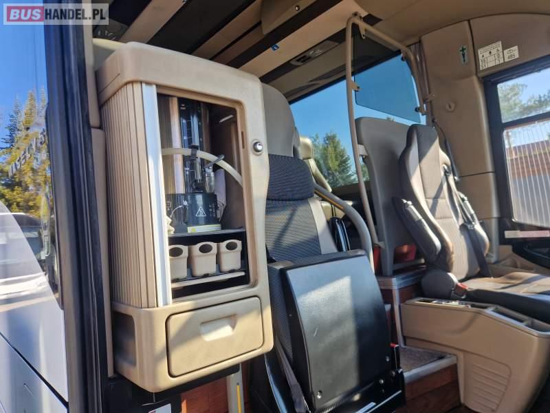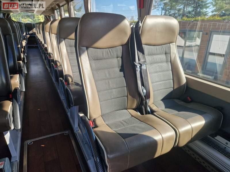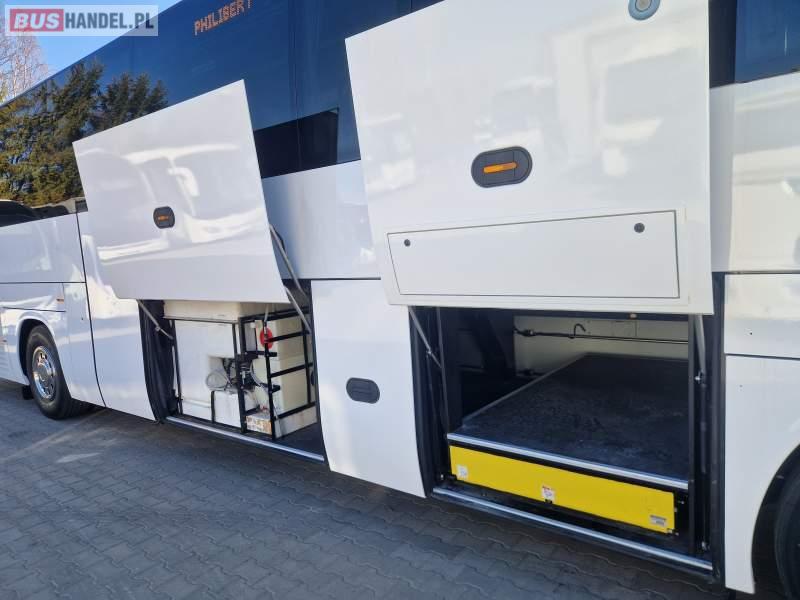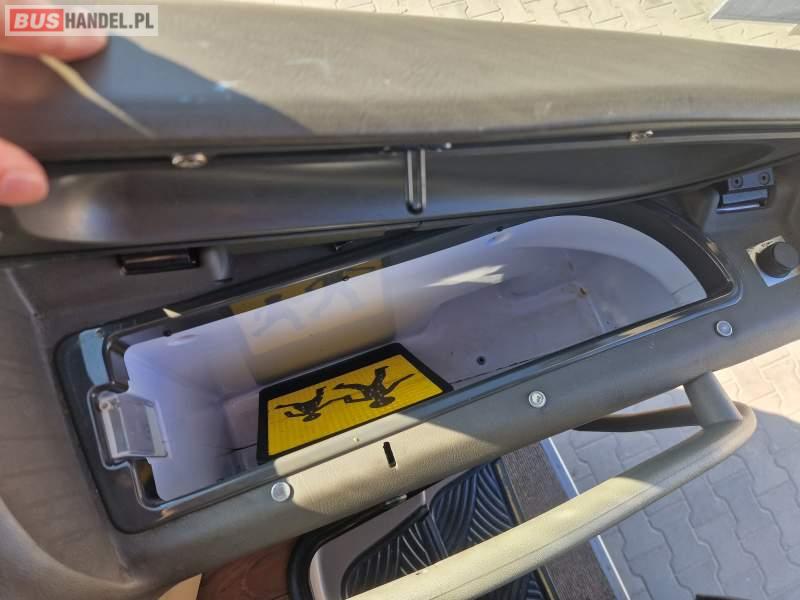 : video, WC, lodówka, caffebar, oświetlenie indywidualne, nawiewy dyszowe, siateczki, ABS, ASR, tempomat, retarder, telefon, CD, podnóżki, stoliczki, mikrofon, klimatyzacja, radio, rampa dla inwalidów, regulacja wysokości nadwozia, centralny zamek, podwójne szyby boczne, wspomaganie kierownicy, elektryczne lusterka, fotele odchylane i rozsuwane, DVD, ogrzewanie stacjonarne, ESP