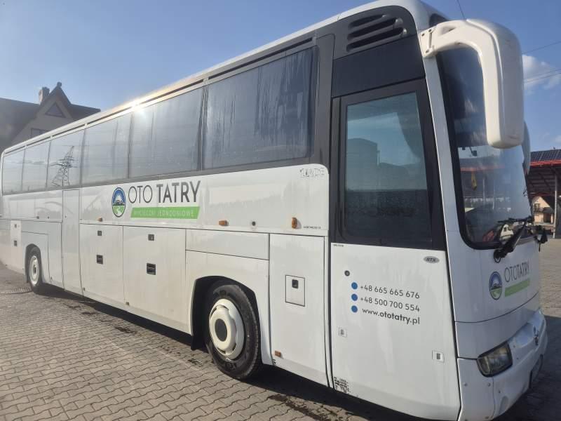 : WC, fotele odchylane, siateczki, ABS, podnóżki, stoliczki, mikrofon, klimatyzacja, radio, podwójne szyby boczne, wspomaganie kierownicy