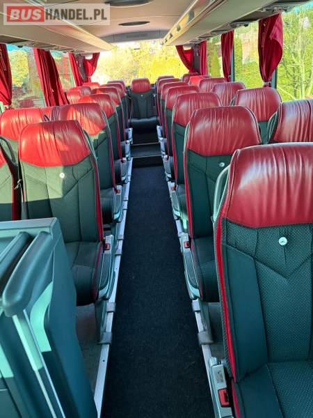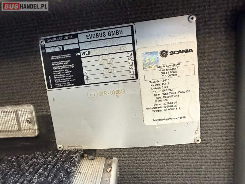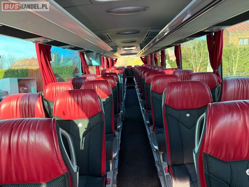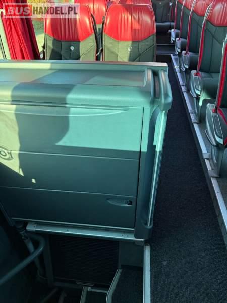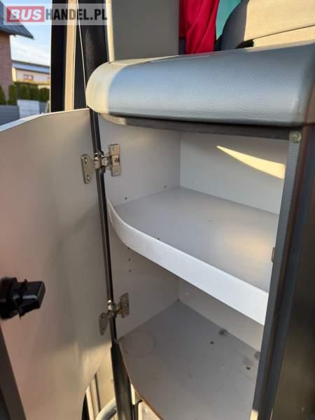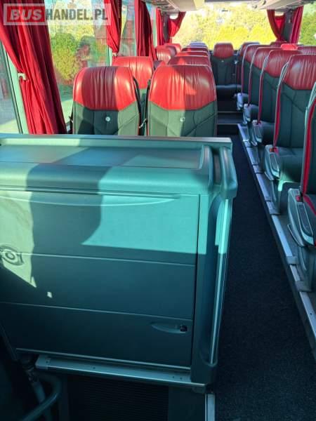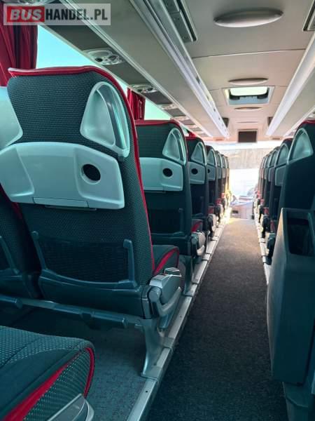 : WC, lodówka, caffebar, kabina sypialna, oświetlenie indywidualne, nawiewy dyszowe, siateczki, ABS, ASR, tempomat, retarder, podnóżki, stoliczki, mikrofon, klimatyzacja, radio, sejf, regulacja wysokości nadwozia, centralny zamek, podwójne szyby boczne, wspomaganie kierownicy, elektryczne lusterka, fotele odchylane i rozsuwane, DVD, ogrzewanie stacjonarne, ESP