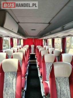 : video, WC, lodówka, caffebar, oświetlenie indywidualne, nawiewy dyszowe, siateczki, ABS, ASR, tempomat, retarder, CD, podnóżki, stoliczki, mikrofon, klimatyzacja, radio, regulacja wysokości nadwozia, centralny zamek, podwójne szyby boczne, wspomaganie kierownicy, elektryczne lusterka, fotele odchylane i rozsuwane, DVD, ogrzewanie stacjonarne, hak holowniczy
