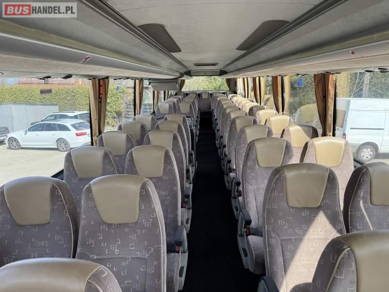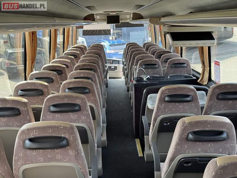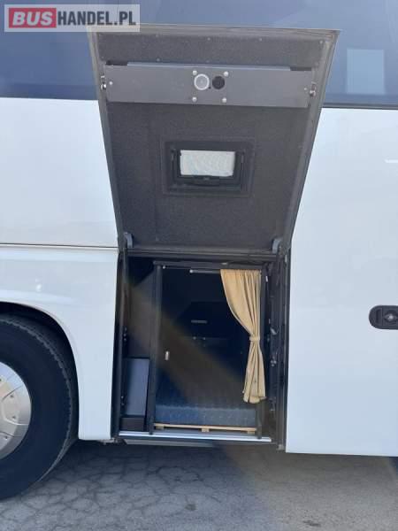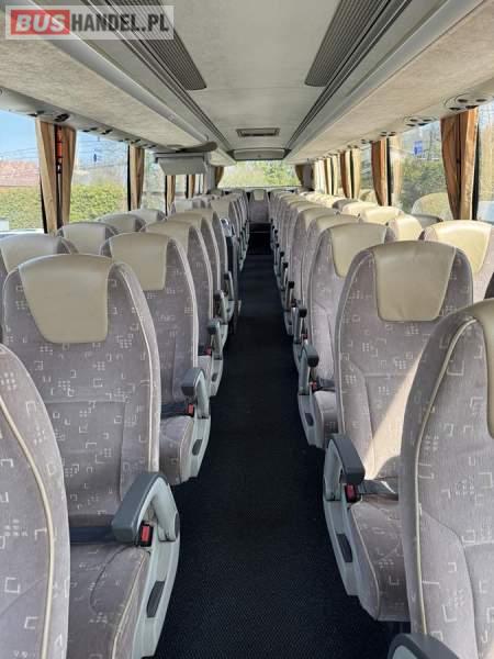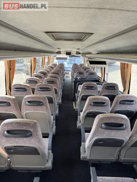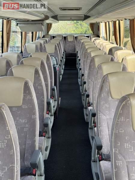 : WC, lodówka, kabina sypialna, fotele odchylane, oświetlenie indywidualne, nawiewy dyszowe, siateczki, ABS, ASR, tempomat, retarder, CD, podnóżki, stoliczki, mikrofon, klimatyzacja, radio, regulacja wysokości nadwozia, centralny zamek, podwójne szyby boczne, wspomaganie kierownicy, elektryczne lusterka, DVD, ogrzewanie stacjonarne, ESP
