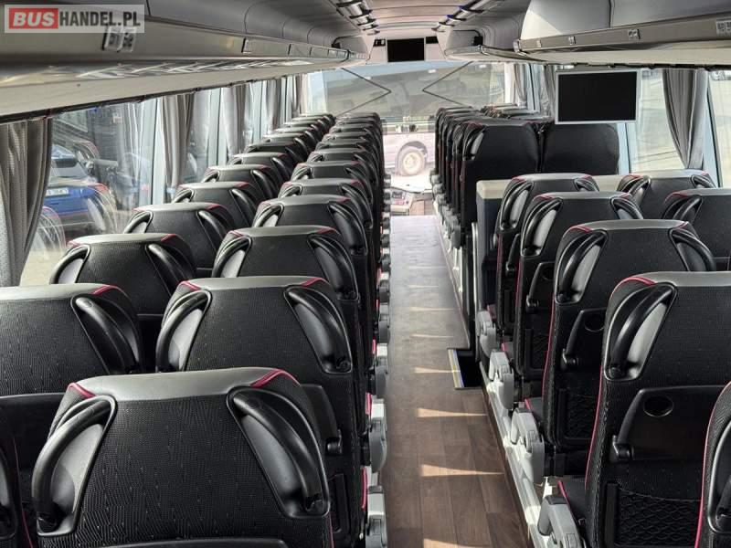 : WC, lodówka, caffebar, fotele odchylane, oświetlenie indywidualne, nawiewy dyszowe, siateczki, ABS, ASR, tempomat, retarder, nawigacja, CD, podnóżki, stoliczki, mikrofon, klimatyzacja, radio, sejf, regulacja wysokości nadwozia, centralny zamek, podwójne szyby boczne, wspomaganie kierownicy, elektryczne lusterka, DVD, ogrzewanie stacjonarne, ESP
