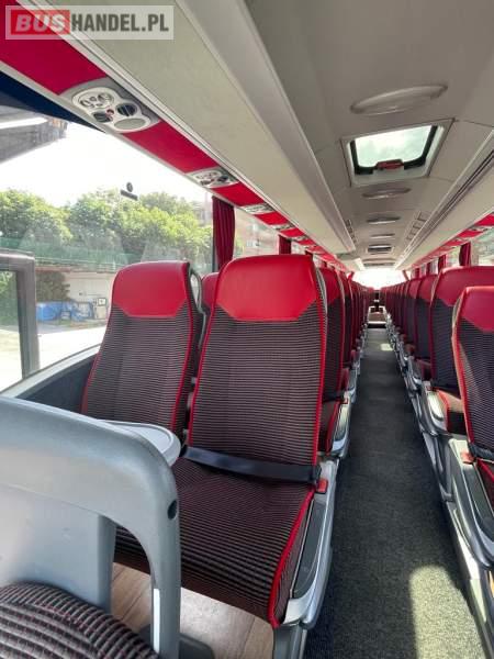 : video, WC, lodówka, caffebar, kabina sypialna, oświetlenie indywidualne, nawiewy dyszowe, siateczki, ABS, ASR, tempomat, retarder, CD, podnóżki, stoliczki, mikrofon, klimatyzacja, radio, sejf, regulacja wysokości nadwozia, centralny zamek, podwójne szyby boczne, wspomaganie kierownicy, elektryczne lusterka, aluminiowe felgi, fotele odchylane i rozsuwane, DVD, ogrzewanie stacjonarne, ESP
