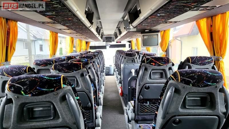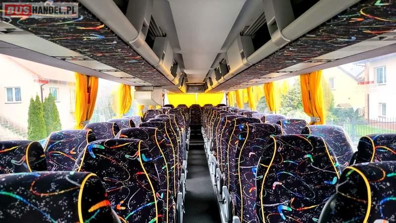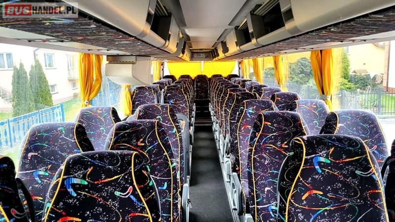 : video, WC, lodówka, kabina sypialna, fotele odchylane, oświetlenie indywidualne, nawiewy dyszowe, ABS, ASR, tempomat, retarder, podnóżki, stoliczki, mikrofon, klimatyzacja, radio, regulacja wysokości nadwozia, centralny zamek, podwójne szyby boczne, wspomaganie kierownicy, elektryczne lusterka, hak holowniczy