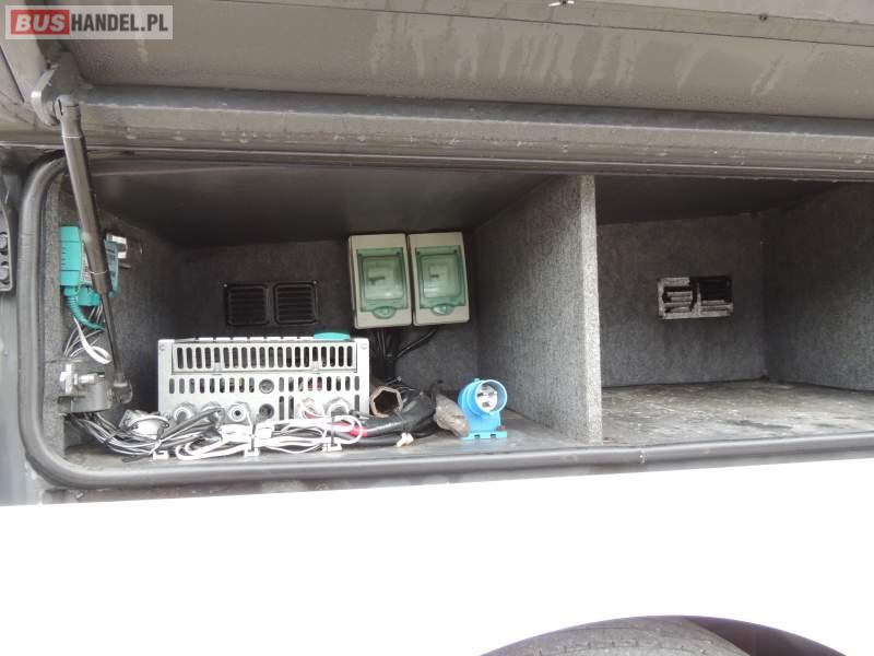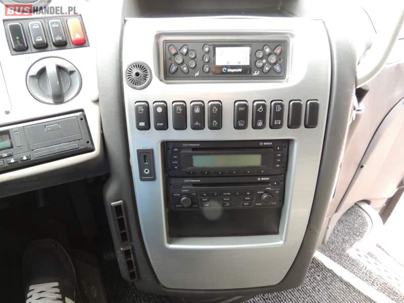 : video, WC, lodówka, caffebar, kabina sypialna, oświetlenie indywidualne, nawiewy dyszowe, siateczki, ABS, ASR, tempomat, retarder, CD, podnóżki, stoliczki, klimatyzacja, radio, rampa dla inwalidów, regulacja wysokości nadwozia, centralny zamek, podwójne szyby boczne, wspomaganie kierownicy, elektryczne lusterka, aluminiowe felgi, fotele odchylane i rozsuwane, DVD, ogrzewanie stacjonarne, ESP