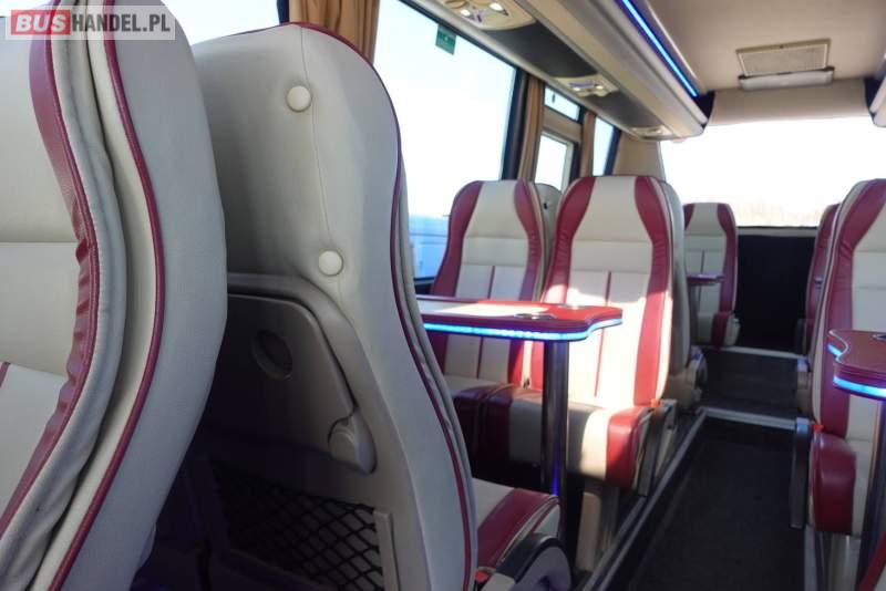 : video, lodówka, fotele odchylane, oświetlenie indywidualne, nawiewy dyszowe, siateczki, ABS, ASR, tempomat, retarder, CD, stoliczki, mikrofon, klimatyzacja, radio, regulacja wysokości nadwozia, podwójne szyby boczne, wspomaganie kierownicy, elektryczne lusterka, fotele odchylane i rozsuwane, DVD, ogrzewanie stacjonarne, ESP