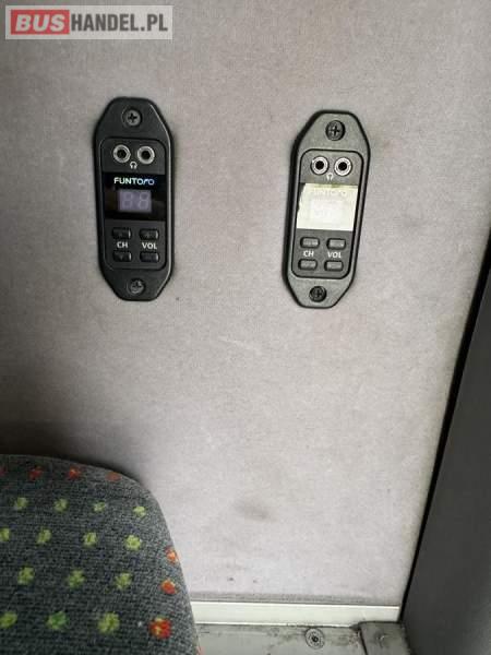 : klimatyzacja, nawiewy dyszowe, fotele nieodchylane, ABS, ASR, retarder, CD, radio, rampa dla inwalidów, centralny zamek, wspomaganie kierownicy, elektryczne lusterka, ogrzewanie stacjonarne, ESP