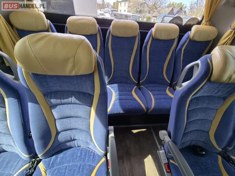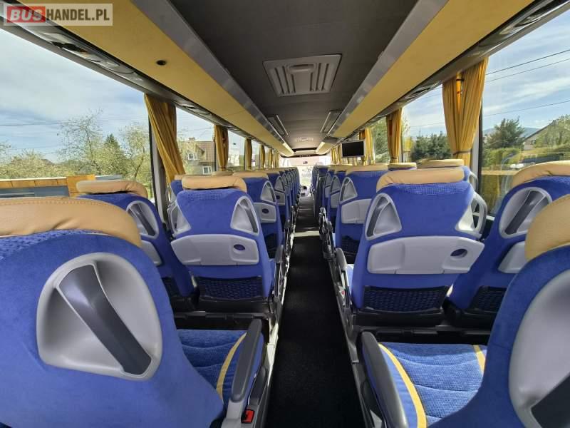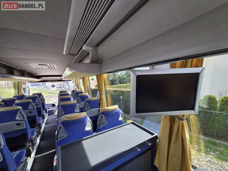 : video, WC, lodówka, caffebar, oświetlenie indywidualne, nawiewy dyszowe, siateczki, ABS, ASR, tempomat, retarder, nawigacja, CD, podnóżki, stoliczki, mikrofon, klimatyzacja, radio, regulacja wysokości nadwozia, centralny zamek, podwójne szyby boczne, wspomaganie kierownicy, elektryczne lusterka, fotele odchylane i rozsuwane, DVD, ogrzewanie stacjonarne, ESP