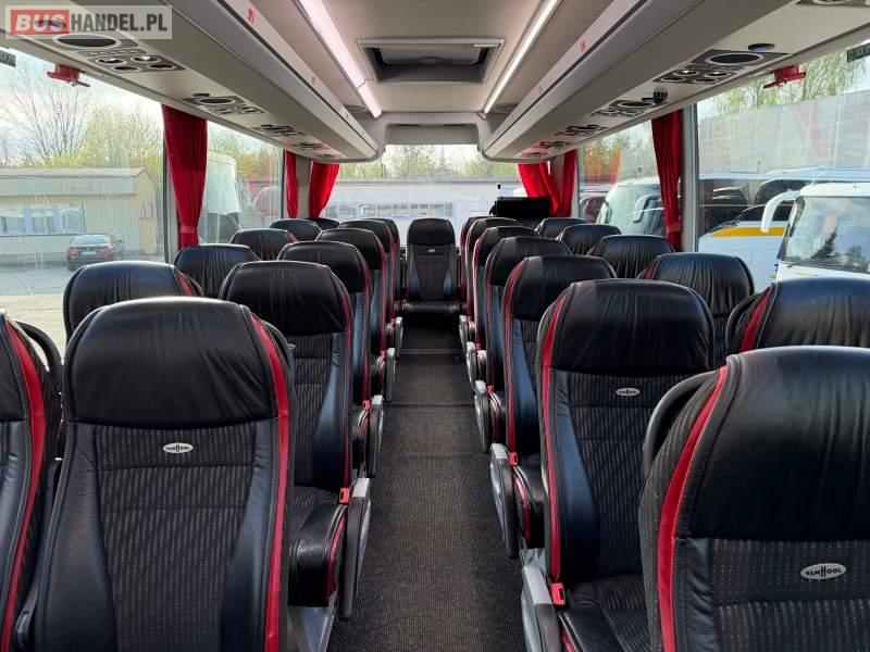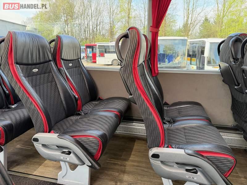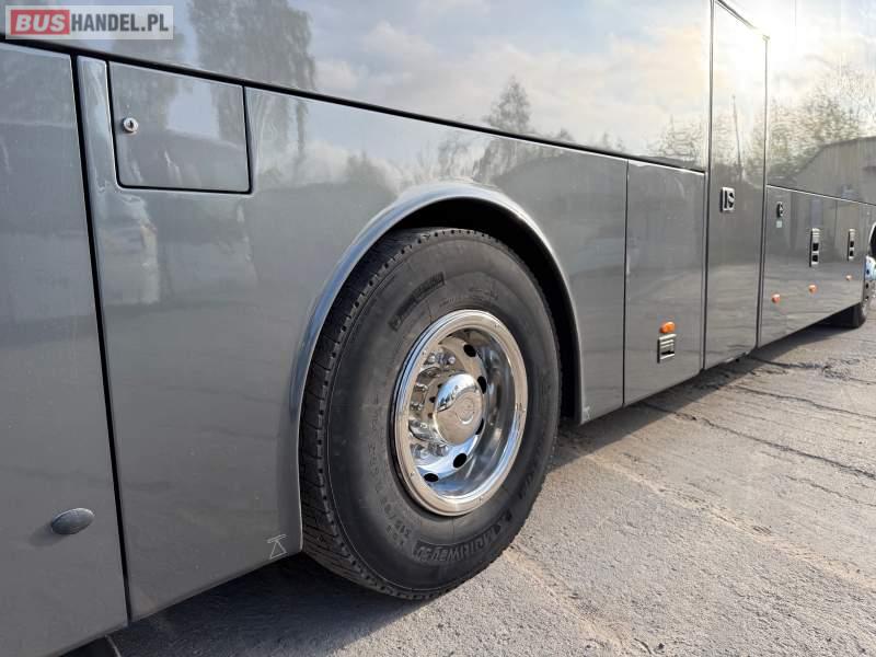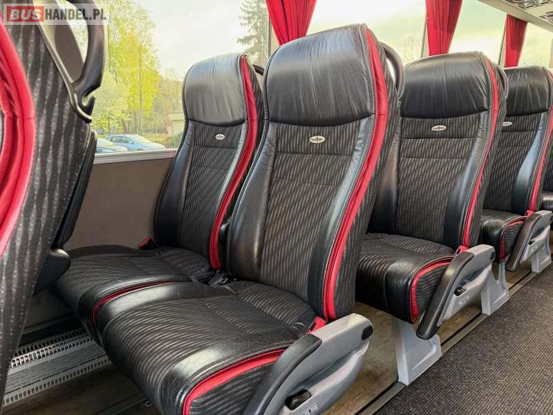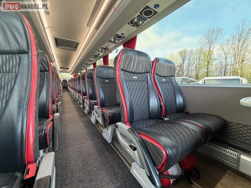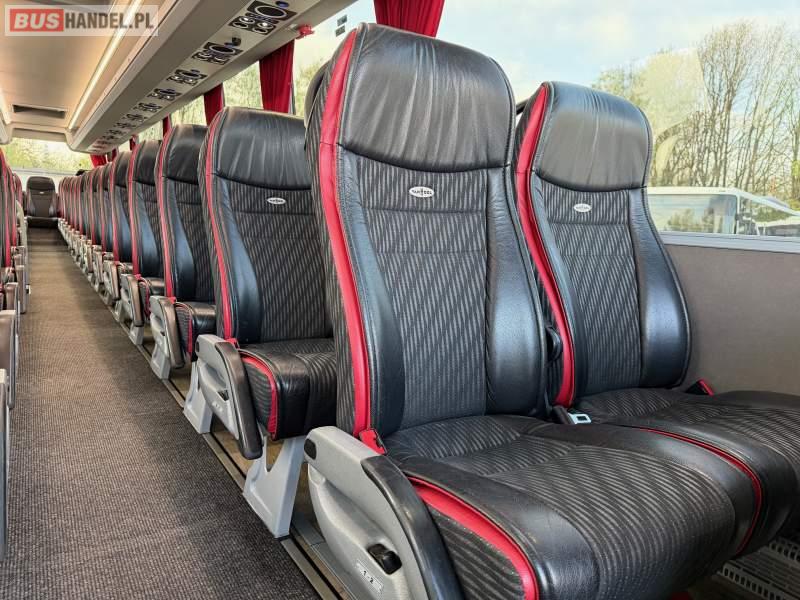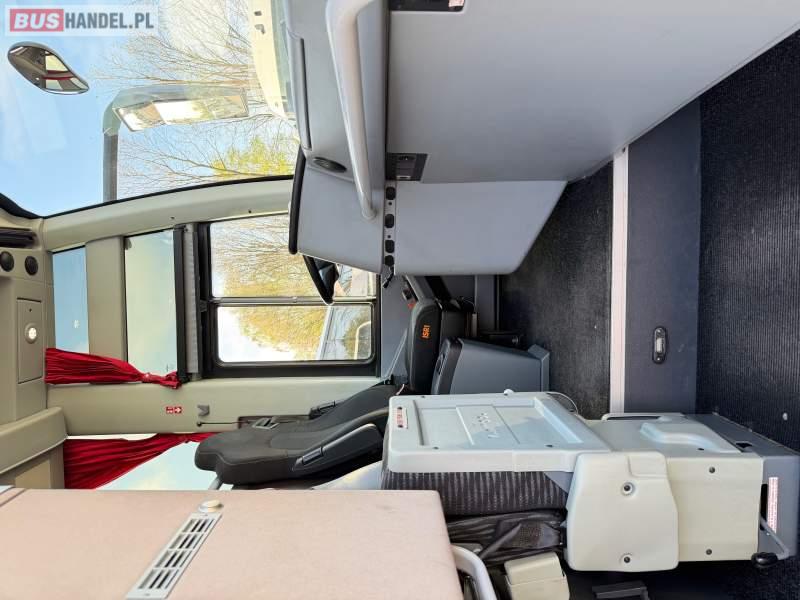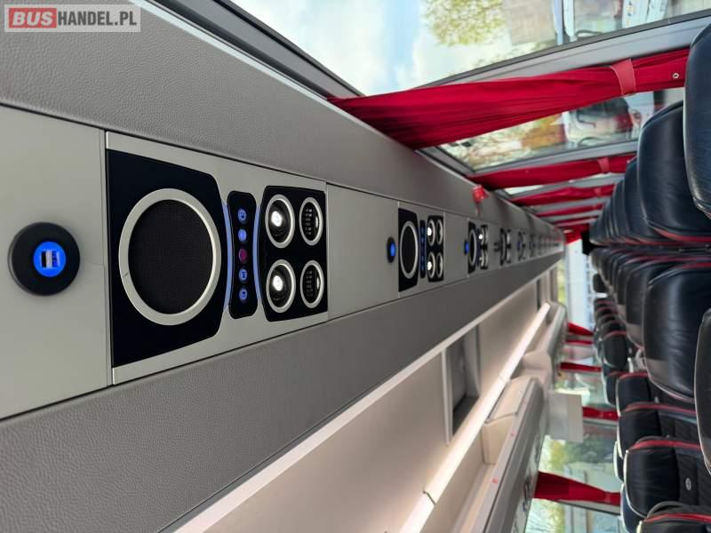: video, WC, lodówka, kabina sypialna, fotele odchylane, oświetlenie indywidualne, nawiewy dyszowe, siateczki, ABS, ASR, tempomat, retarder, podnóżki, stoliczki, mikrofon, klimatyzacja, regulacja wysokości nadwozia, podwójne szyby boczne, wspomaganie kierownicy, elektryczne lusterka, ogrzewanie stacjonarne