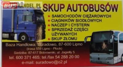Witam! Firma zdecydowanie kupi autobusy wszystkich marek! Pojazdy mogą być uszkodzone, niekompletne, powypadkowe, bez ważnych dokumentów. Skupujemy również sprawne autobusy. Cena do uzgodnienia telefonicznie. Najlepsze CENY, płatność gotówką ! Odbiór 24 H. Posiadam również części do wszystkich marek autobusów! Pozdrawiam! 532556461. 600371465 , 504531059 Jesteśmy największą firmą w Polsce zajmującą się kasacją autobusów . http://skupzlomu-autobusow. pl/ Sprzedający: