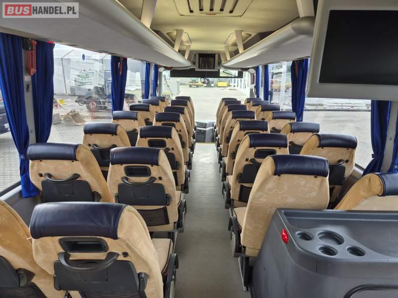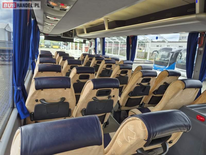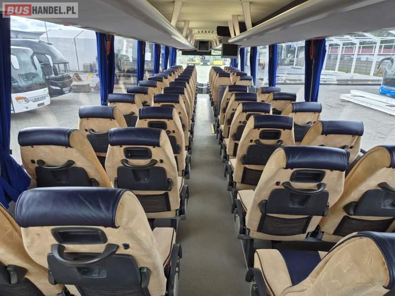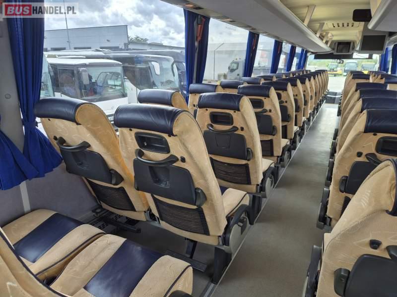 : video, WC, lodówka, kabina sypialna, fotele odchylane, oświetlenie indywidualne, ABS, tempomat, retarder, mikrofon, klimatyzacja, radio, regulacja wysokości nadwozia, centralny zamek, podwójne szyby boczne, wspomaganie kierownicy, elektryczne lusterka, DVD, ogrzewanie stacjonarne