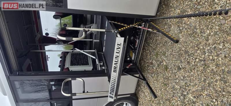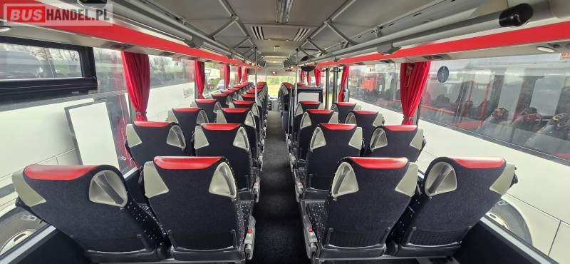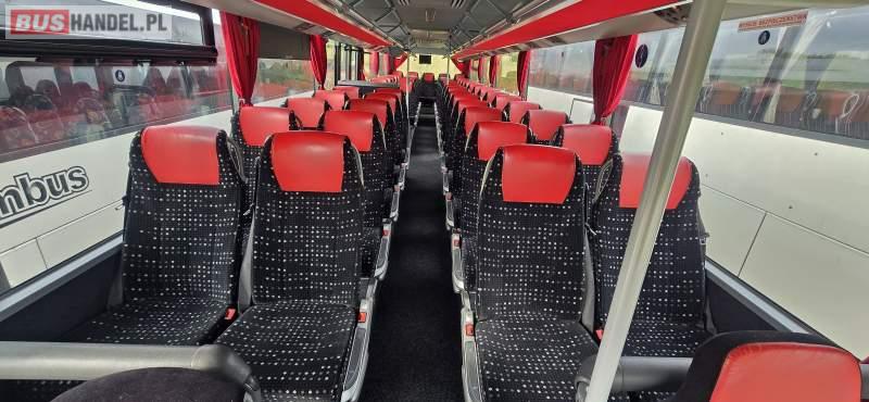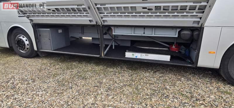 : video, WC, lodówka, oświetlenie indywidualne, nawiewy dyszowe, siateczki, ABS, ASR, tempomat, retarder, CD, stoliczki, mikrofon, klimatyzacja, radio, wyświetlacz matrix, rampa dla inwalidów, regulacja wysokości nadwozia, centralny zamek, podwójne szyby boczne, wspomaganie kierownicy, elektryczne lusterka, fotele odchylane i rozsuwane, DVD, ogrzewanie stacjonarne, ESP