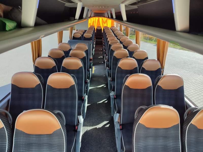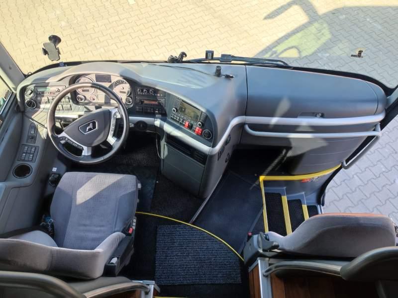 : video, WC, lodówka, kabina sypialna, fotele odchylane, oświetlenie indywidualne, ABS, ASR, tempomat, retarder, CD, podnóżki, stoliczki, mikrofon, klimatyzacja, radio, regulacja wysokości nadwozia, centralny zamek, podwójne szyby boczne, wspomaganie kierownicy, elektryczne lusterka, DVD, ogrzewanie stacjonarne, ESP