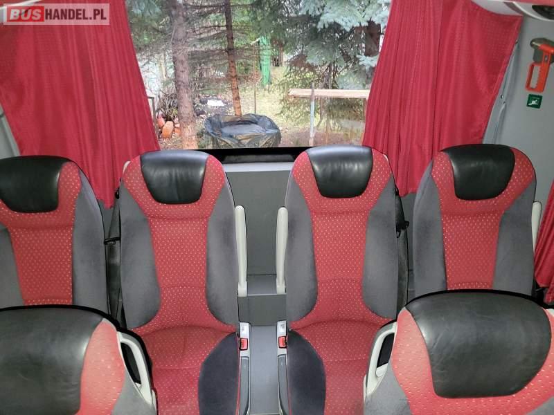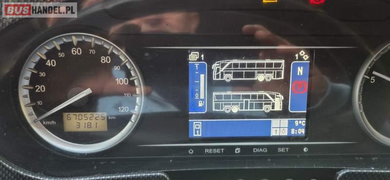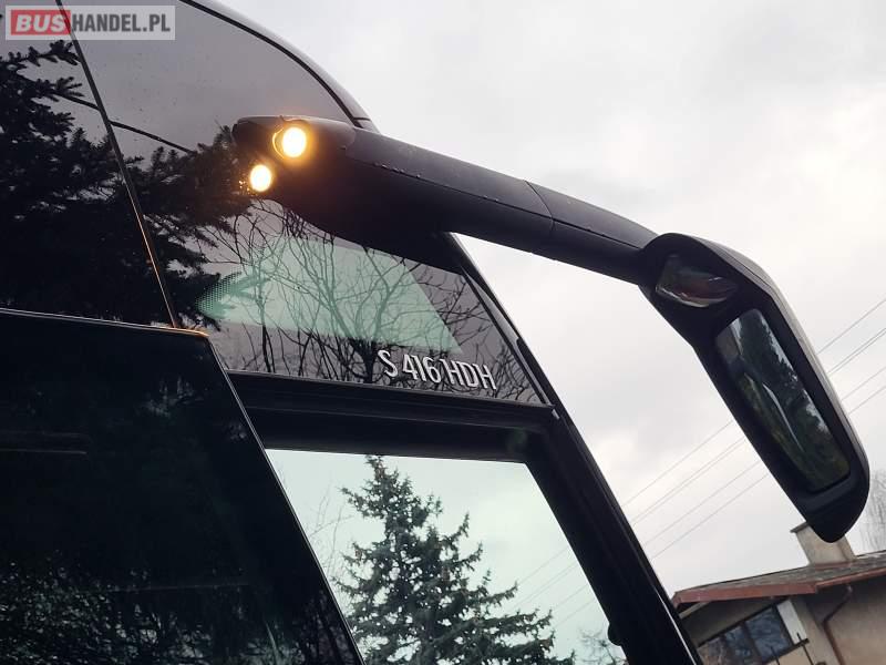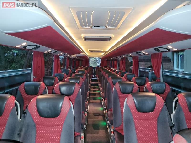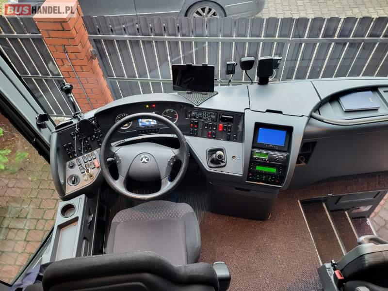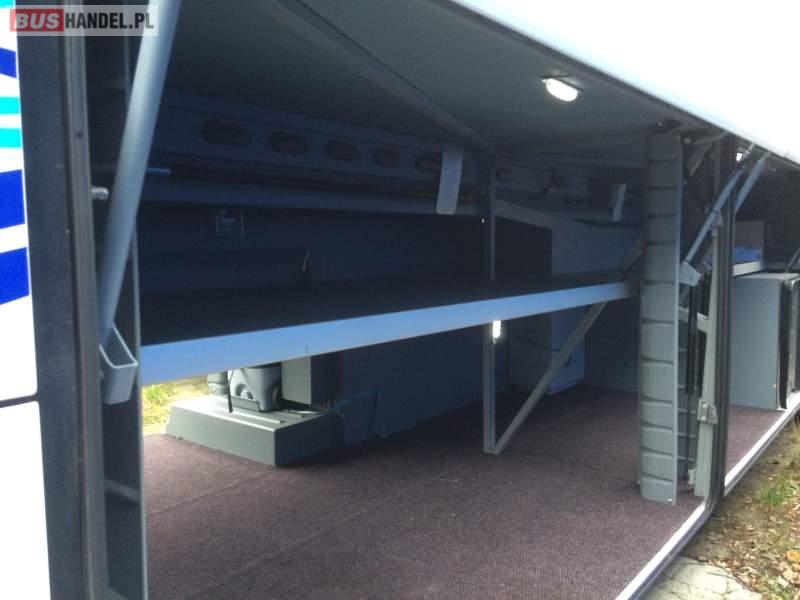 : video, WC, lodówka, caffebar, kabina sypialna, oświetlenie indywidualne, nawiewy dyszowe, siateczki, ABS, ASR, tempomat, retarder, telefon, nawigacja, CD, podnóżki, stoliczki, mikrofon, klimatyzacja, radio, sejf, regulacja wysokości nadwozia, centralny zamek, podwójne szyby boczne, wspomaganie kierownicy, elektryczne lusterka, fotele odchylane i rozsuwane, DVD, ogrzewanie stacjonarne, hak holowniczy, ESP