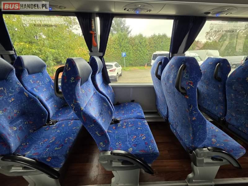 : lodówka, fotele odchylane, oświetlenie indywidualne, nawiewy dyszowe, siateczki, ABS, ASR, tempomat, retarder, podnóżki, stoliczki, mikrofon, klimatyzacja, radio, regulacja wysokości nadwozia, centralny zamek, podwójne szyby boczne, wspomaganie kierownicy, elektryczne lusterka, DVD, ogrzewanie stacjonarne