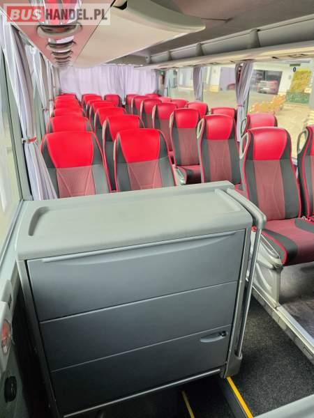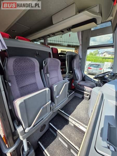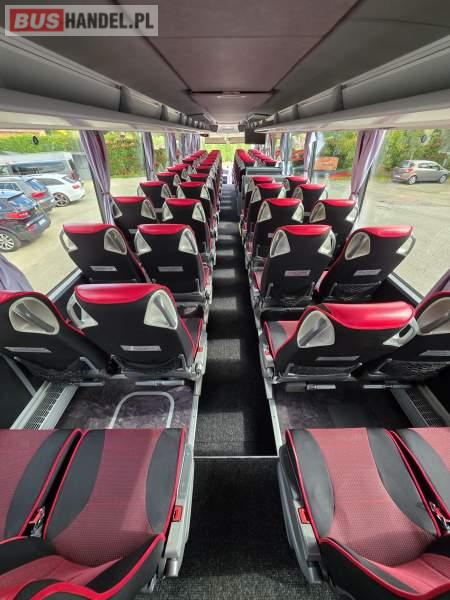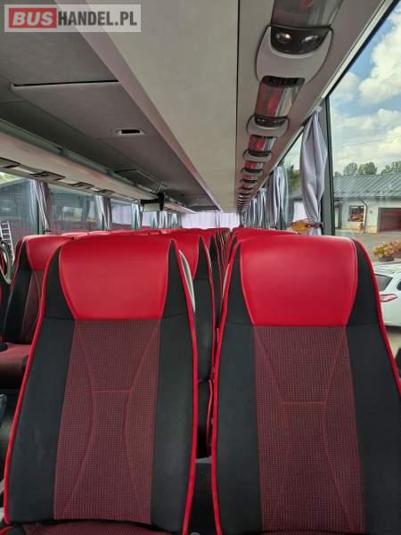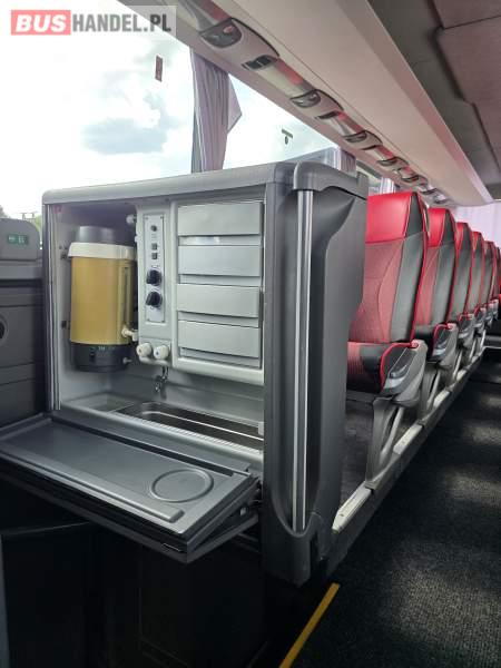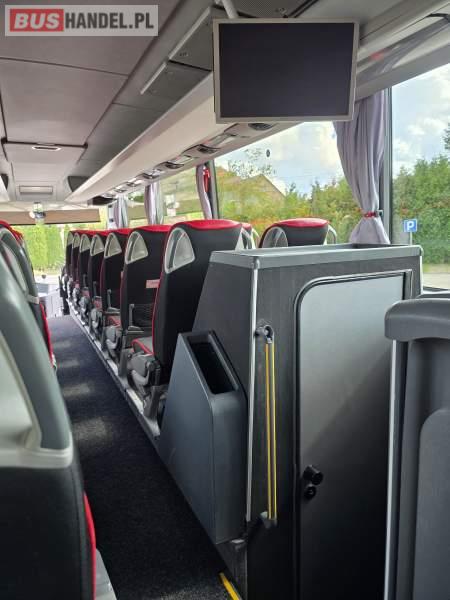 : WC, lodówka, caffebar, kabina sypialna, oświetlenie indywidualne, nawiewy dyszowe, siateczki, ABS, ASR, tempomat, retarder, podnóżki, stoliczki, mikrofon, klimatyzacja, radio, sejf, regulacja wysokości nadwozia, centralny zamek, podwójne szyby boczne, wspomaganie kierownicy, elektryczne lusterka, fotele odchylane i rozsuwane, DVD, ogrzewanie stacjonarne, ESP